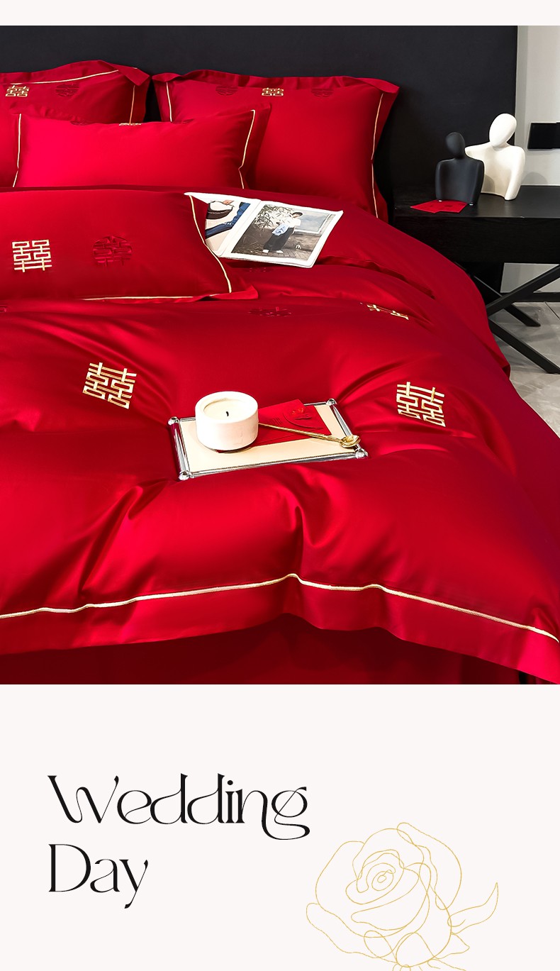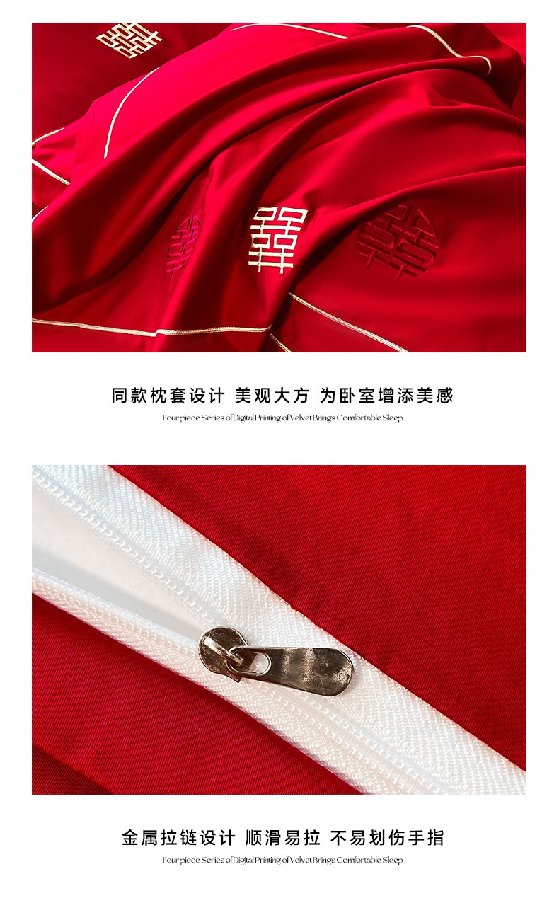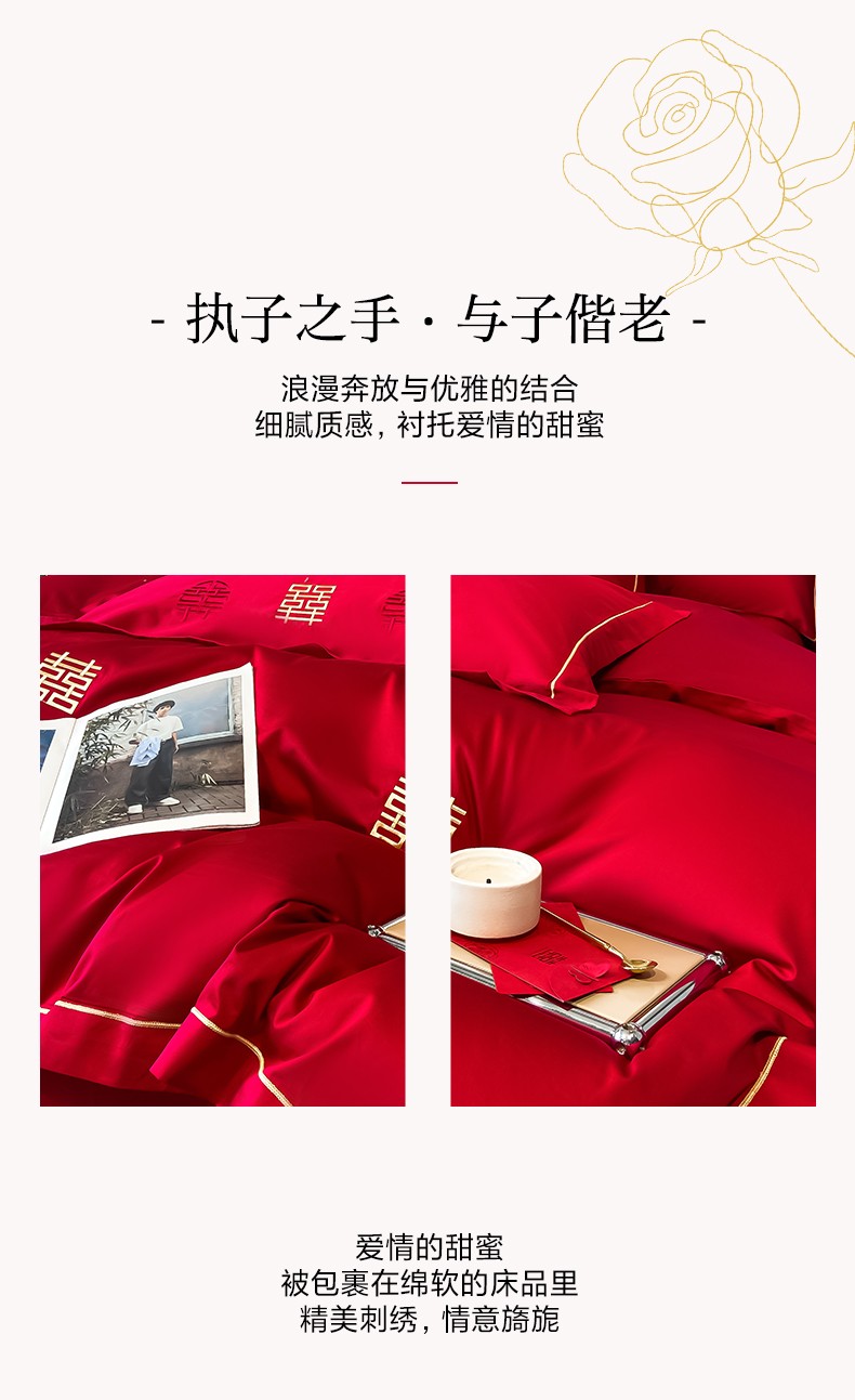 (总)金麦家纺 2025新款亲肤磨毛刺绣婚庆四件套,大喜,喜结良缘,喜愿,吾家有喜,喜爱,玫瑰有约