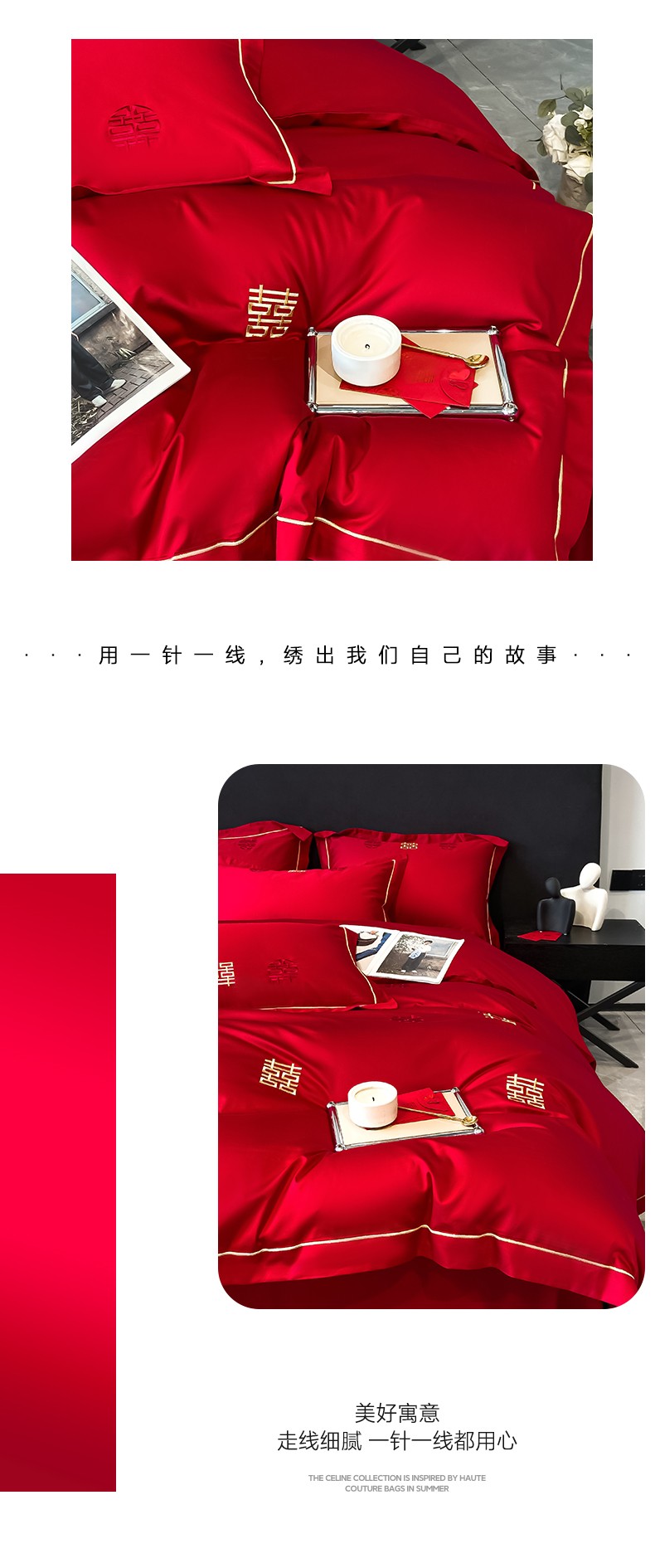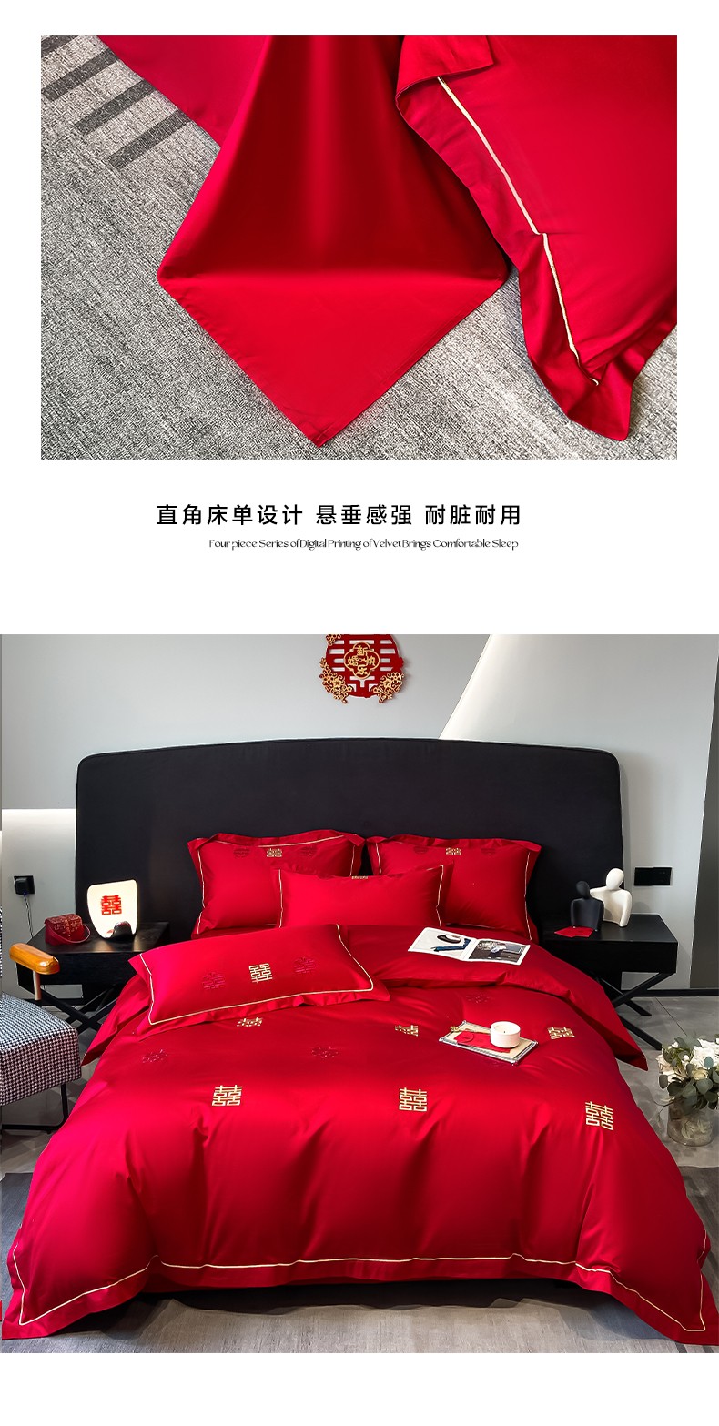 金麦 2023新款喷气全棉刺绣婚庆系列四件套 喜嫁