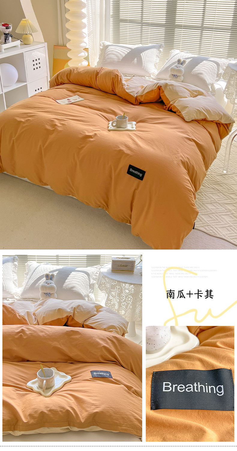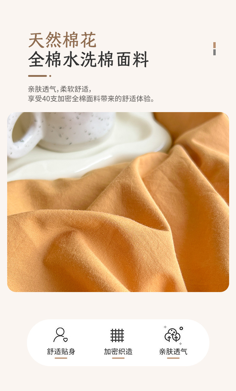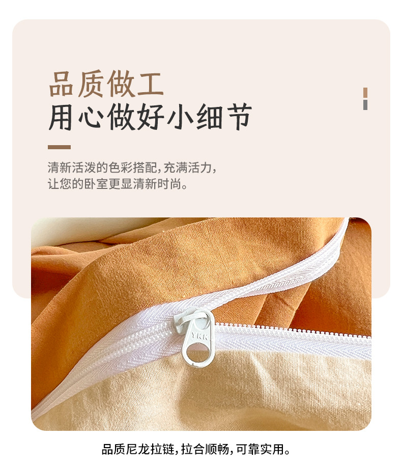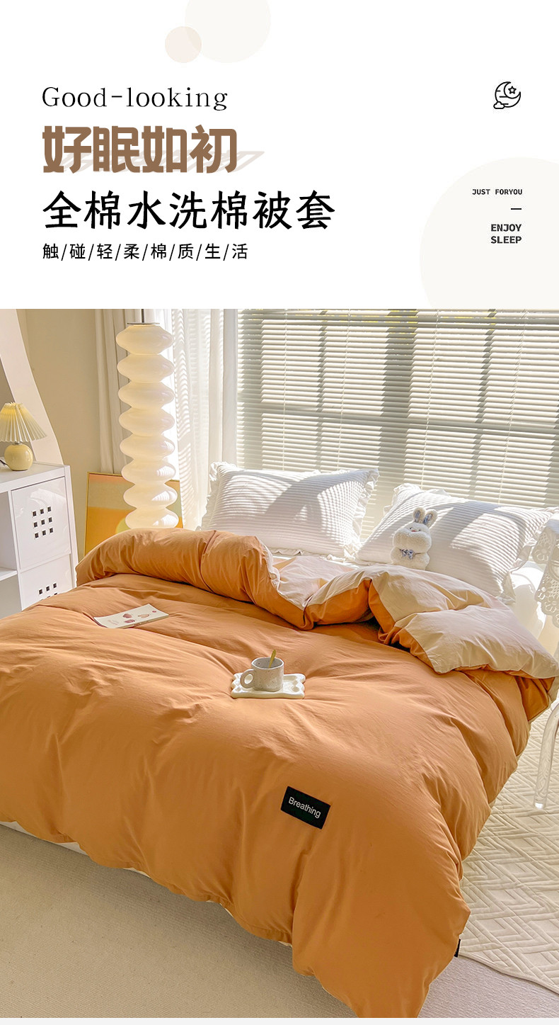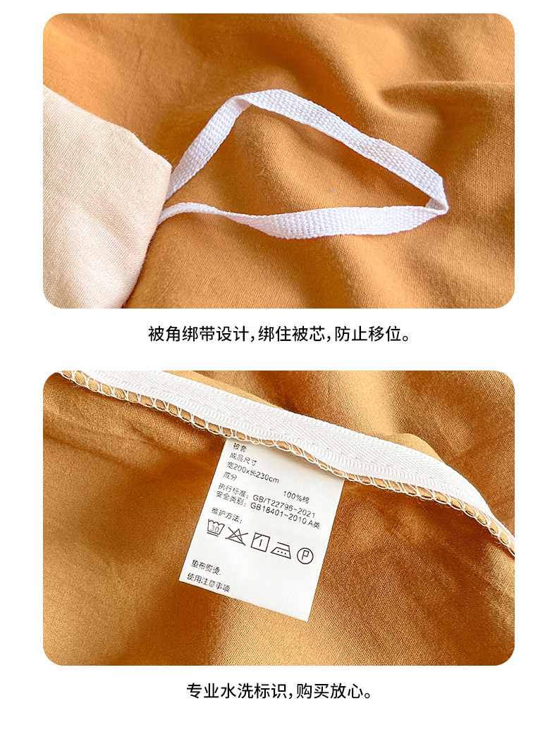 绵庭家纺 2023新款全棉水洗棉拼色单被套 南瓜+卡其