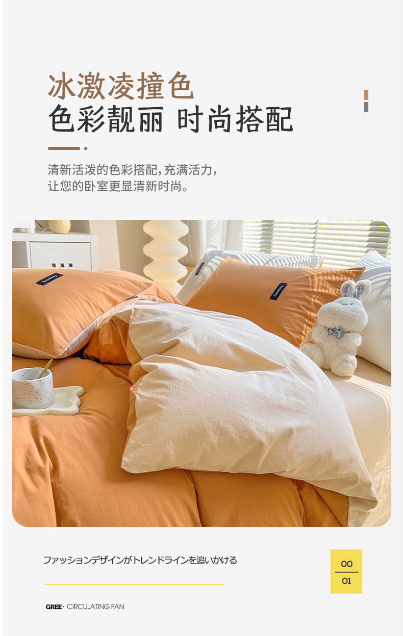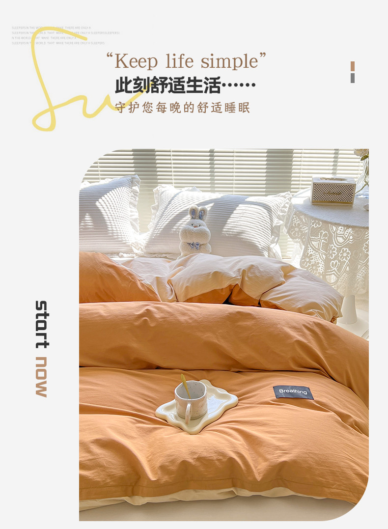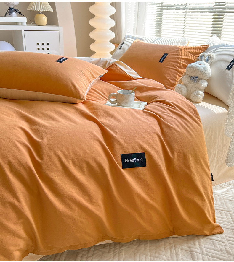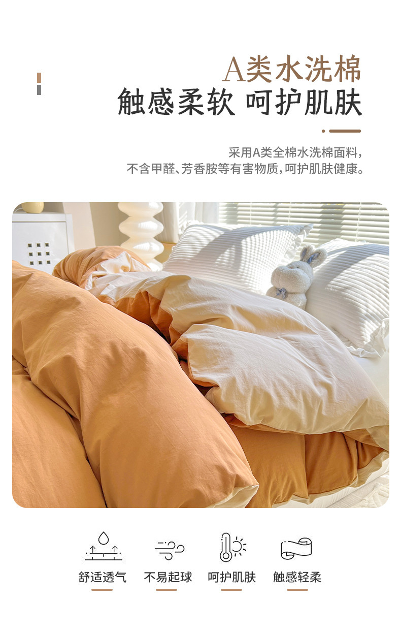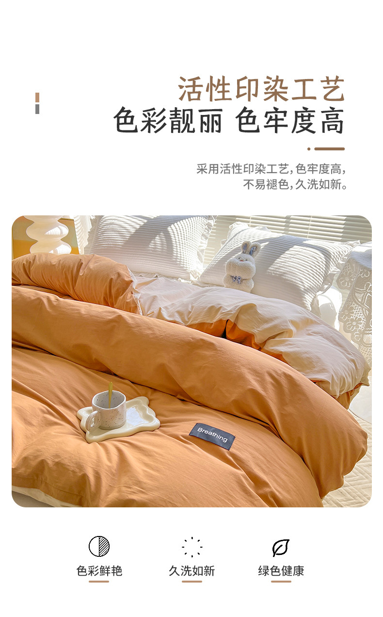 绵庭家纺 2023新款全棉水洗棉拼色单被套 南瓜+卡其