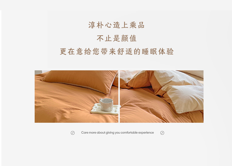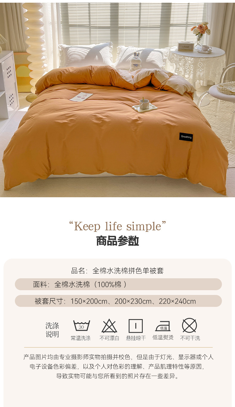 商品名称:绵庭家纺 2023新款全棉水洗棉拼色单被套 南瓜+卡其