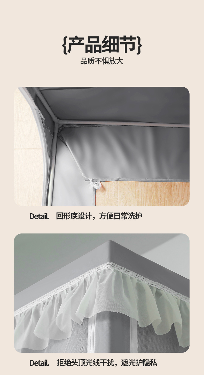 (总)夏彩 2025新款五面保暖坐床拉链四季款蚊帐-88631,绿雅灰,藕玉色,香槟色,保暖顶-香槟色,保暖顶-藕玉色,保暖顶-绿雅灰