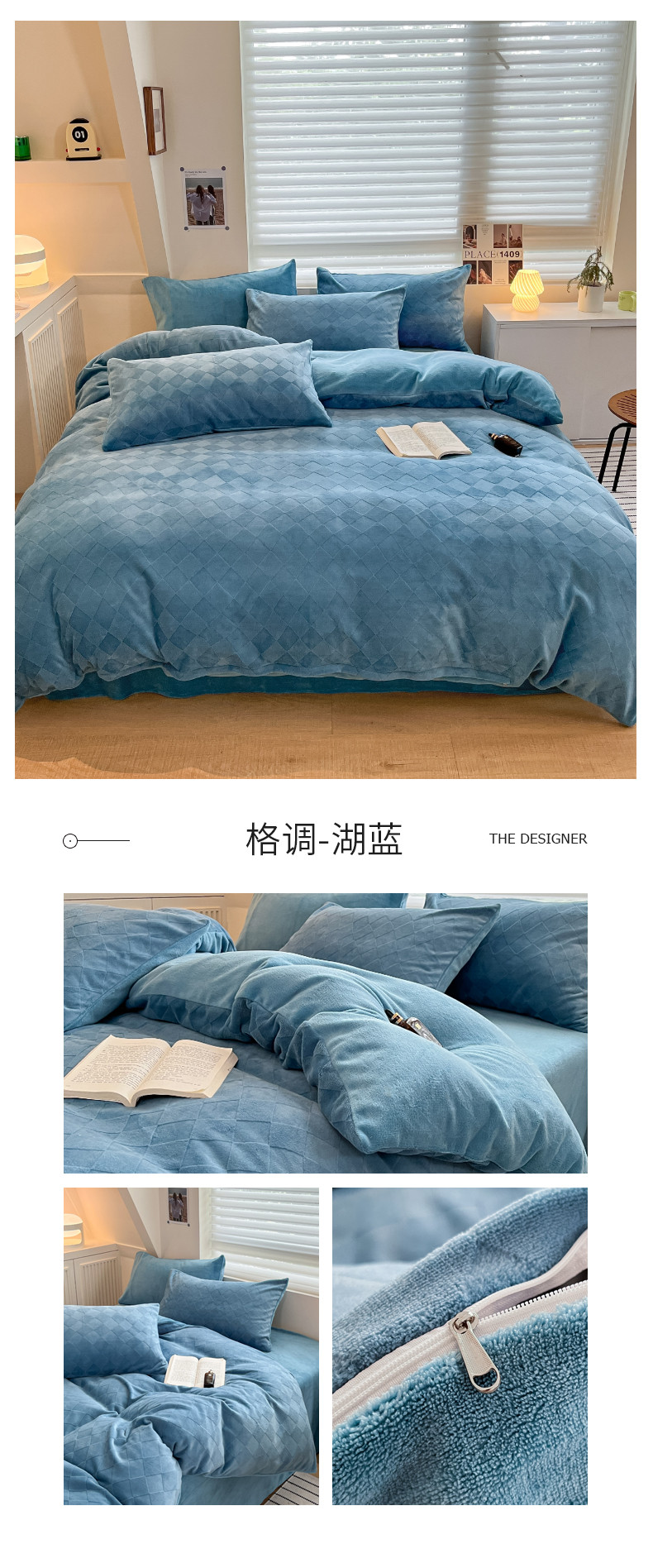 当前位置: 91家纺网 > 商品网购 > 床品套件 > 四件套 > 牛奶绒四件套 > 丝羽坊 2023新款高克重3D立体雕花提花牛奶绒四件套单被套 格调-湖蓝