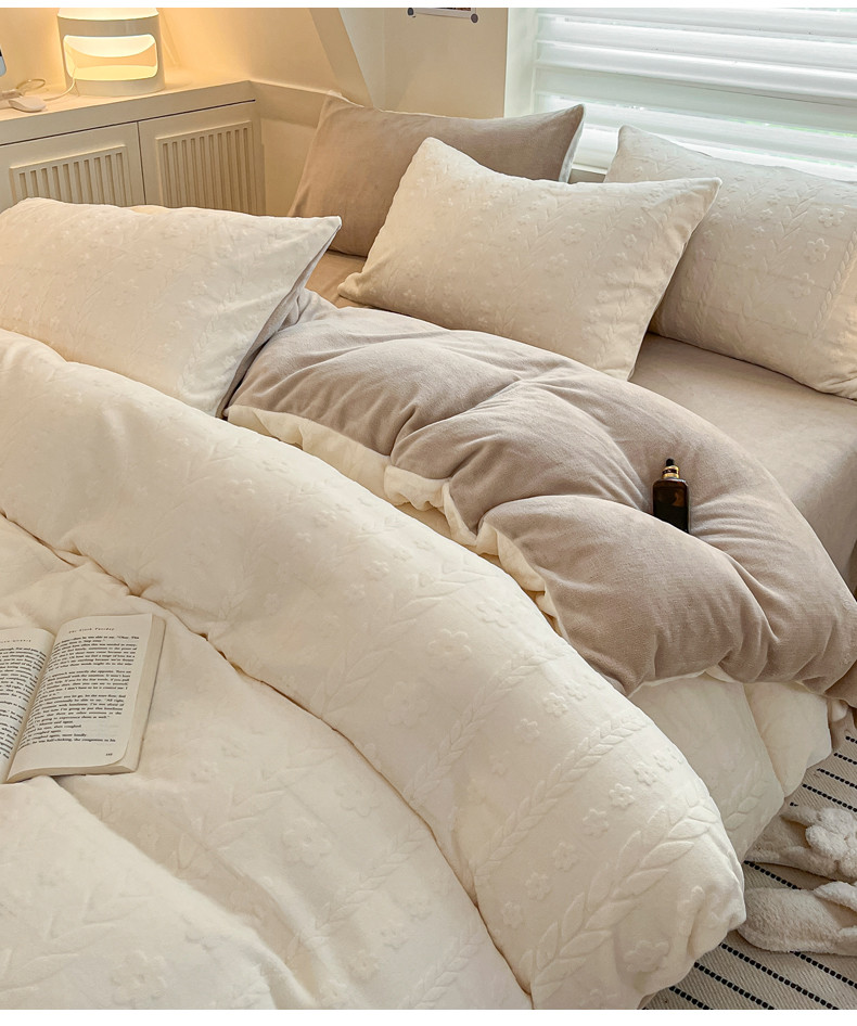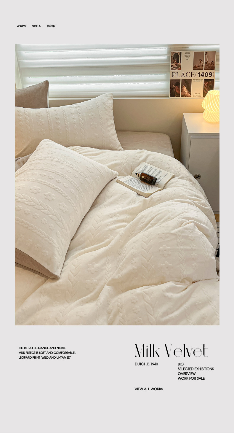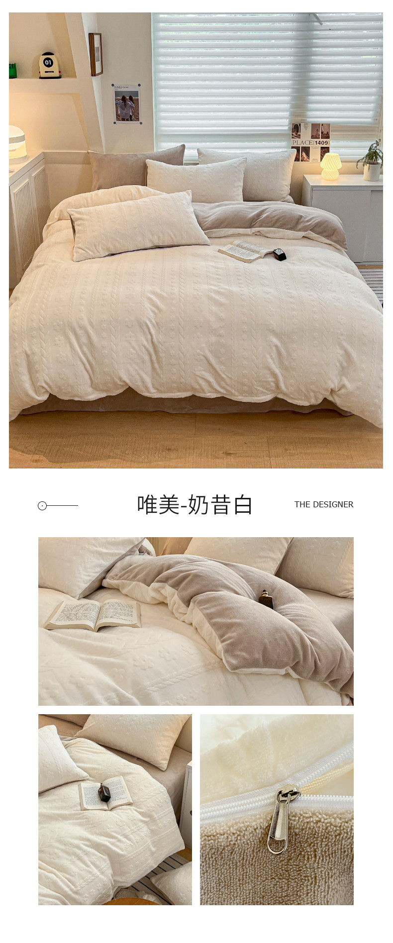 当前位置: 91家纺网 > 商品网购 > 床品套件 > 四件套 > 牛奶绒四件套 > 丝羽坊 2023新款高克重3D立体雕花提花牛奶绒四件套单被套 唯美-奶昔白