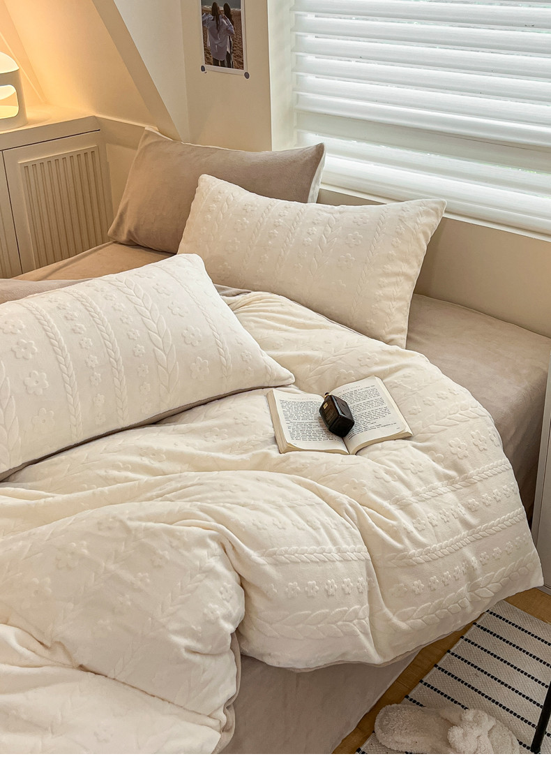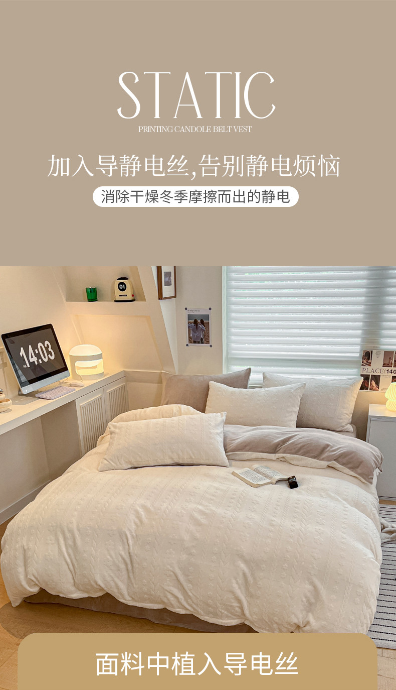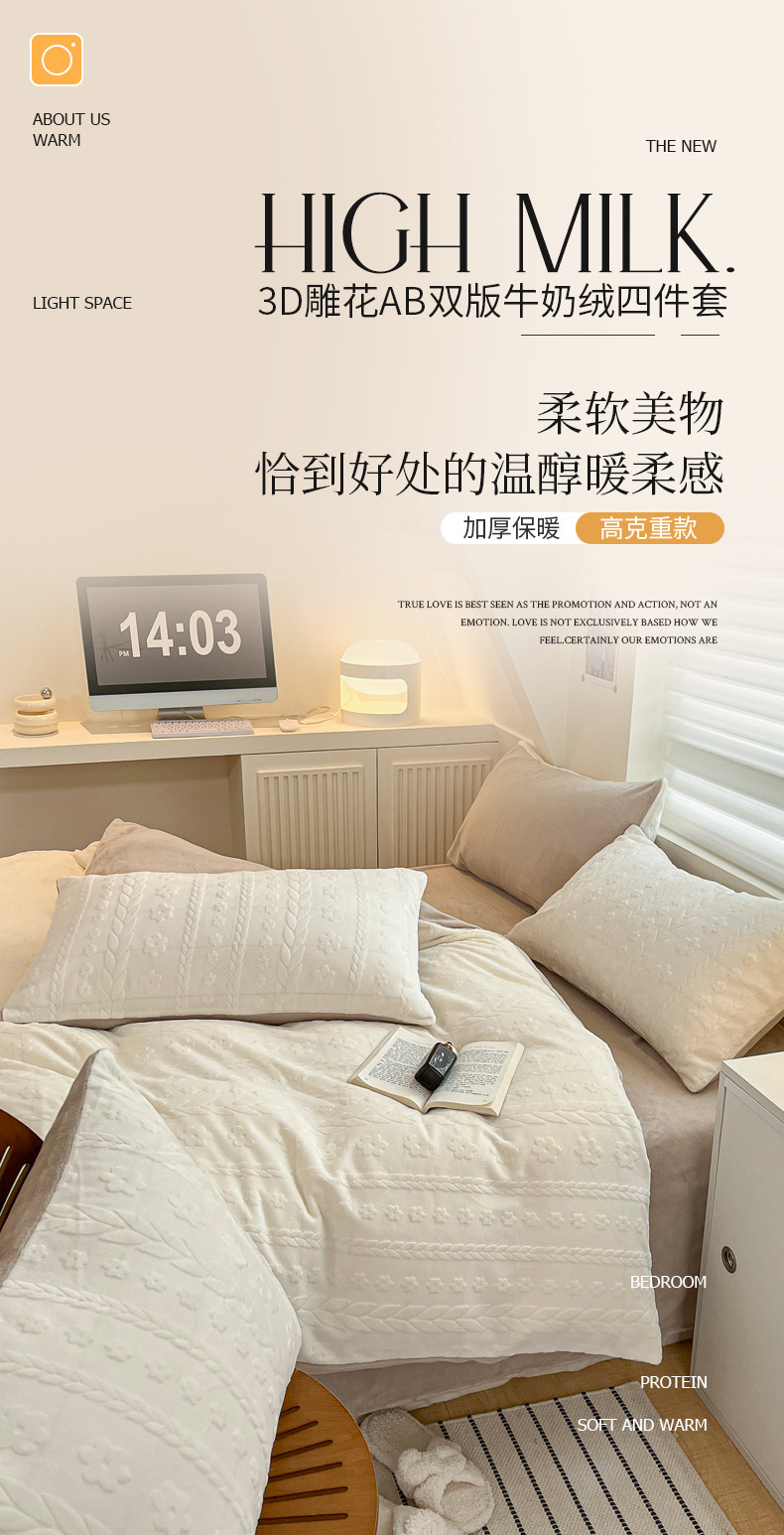 当前位置: 91家纺网 > 商品网购 > 床品套件 > 四件套 > 牛奶绒四件套 > 丝羽坊 2023新款高克重3D立体雕花提花牛奶绒四件套单被套 唯美-奶昔白