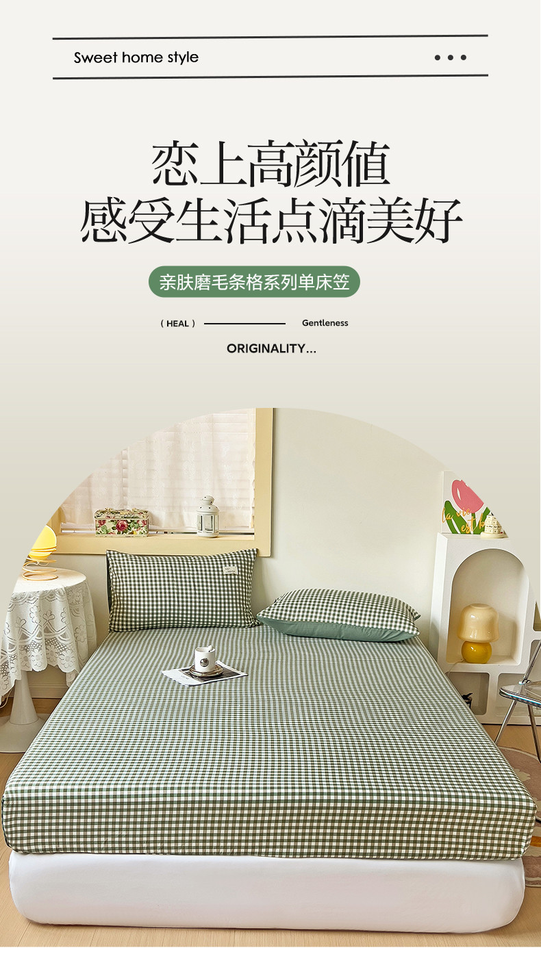 (总)水墨江南 2023新款亲肤磨毛条格系列单床笠