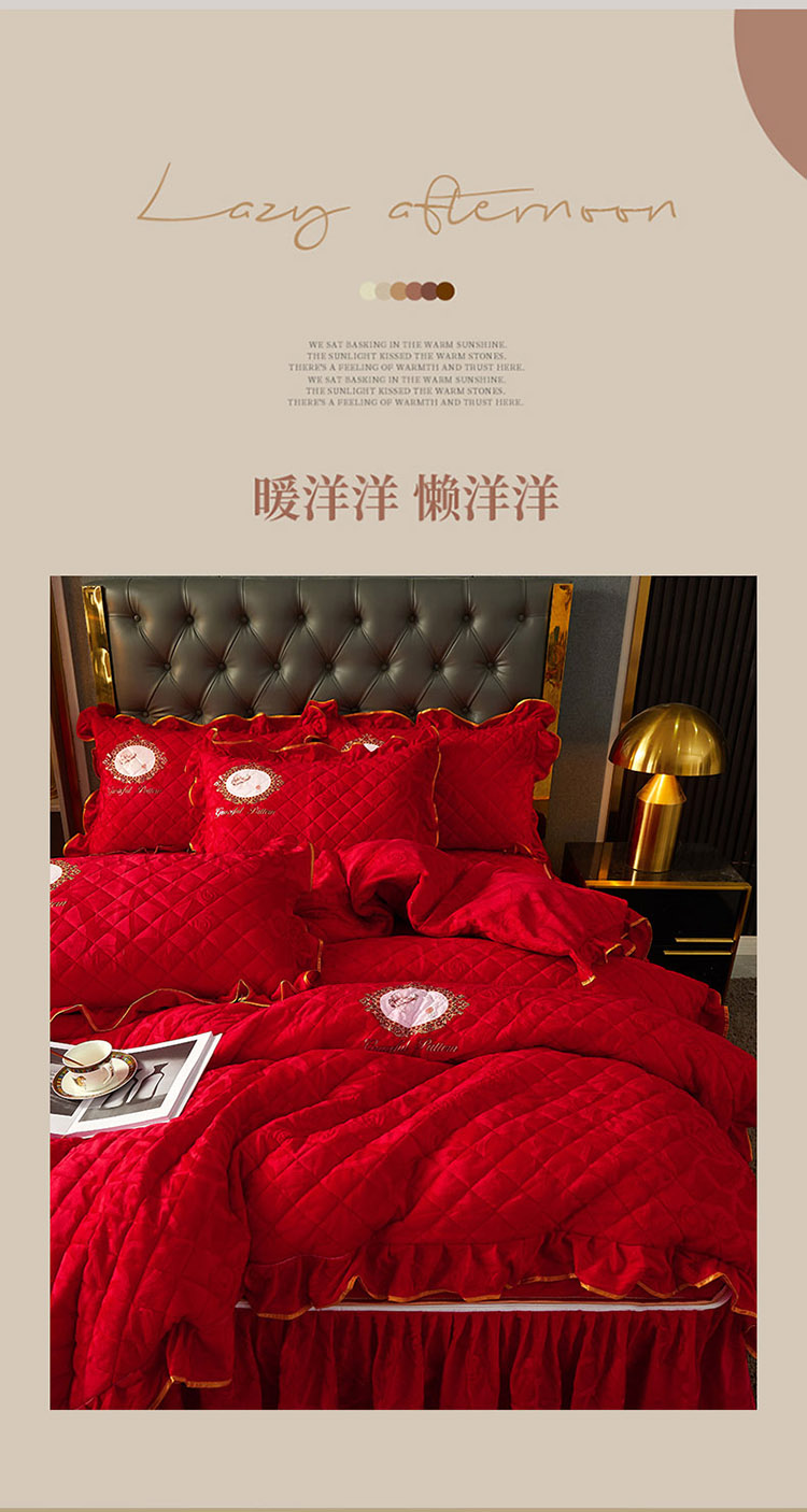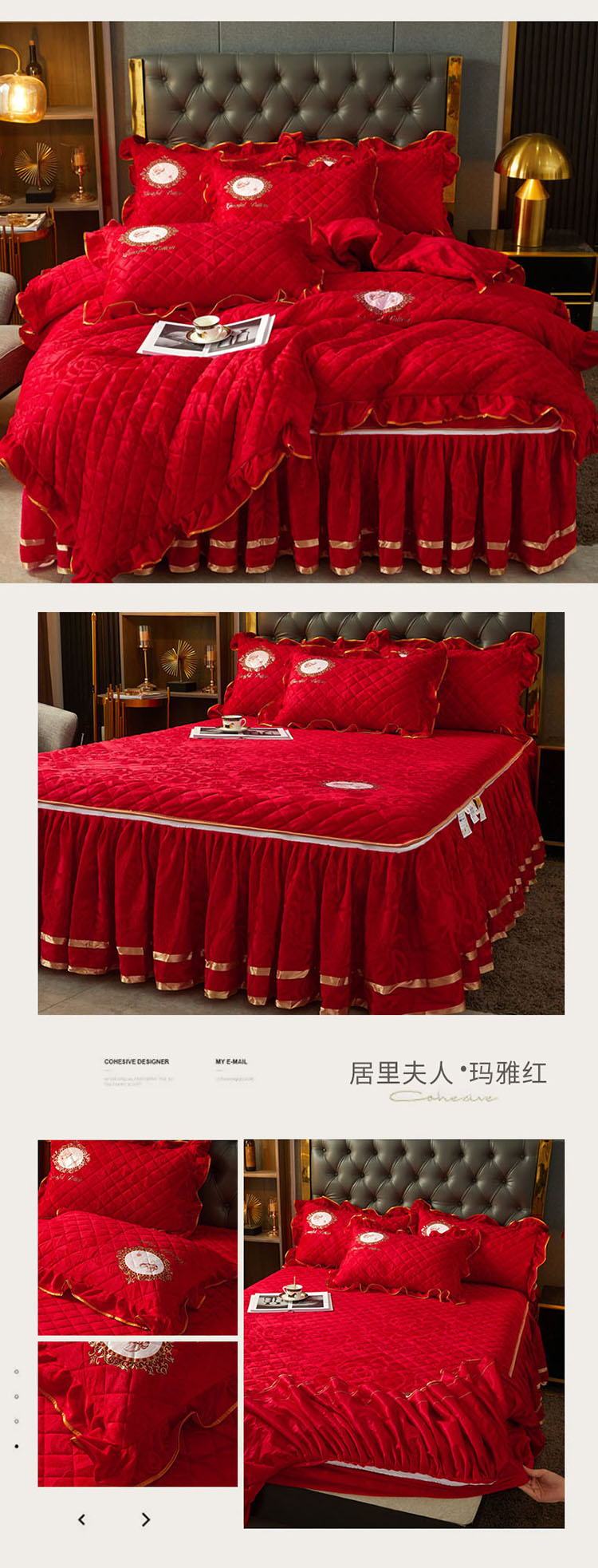 当前位置: 91家纺网 > 商品网购 > 床品套件 > 四件套 > 磨绒四件套 > 大豆蛋白棉天鹅绒夹棉床笠加床裙拉链可脱卸床裙 居里夫人-玛雅红
