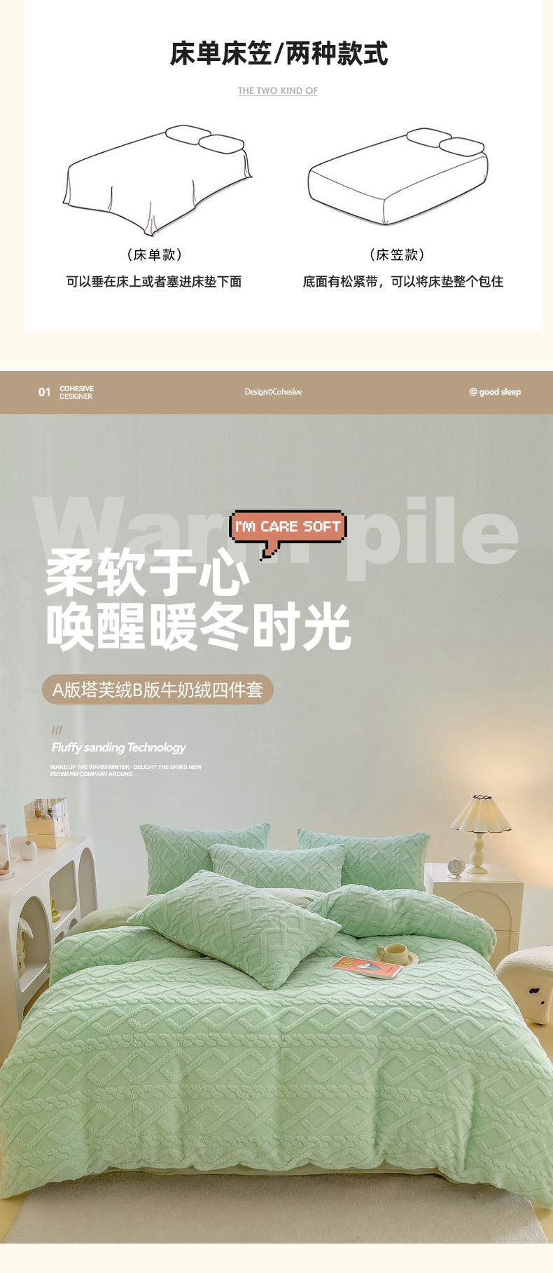 (总)绒世界 2024秋冬新款加厚塔芙绒简约款牛奶绒四件套