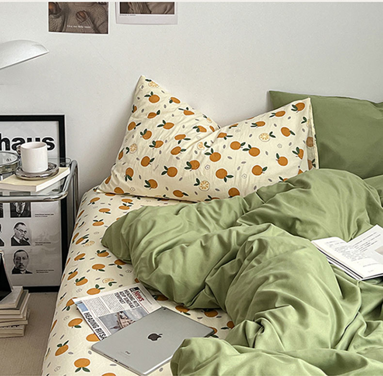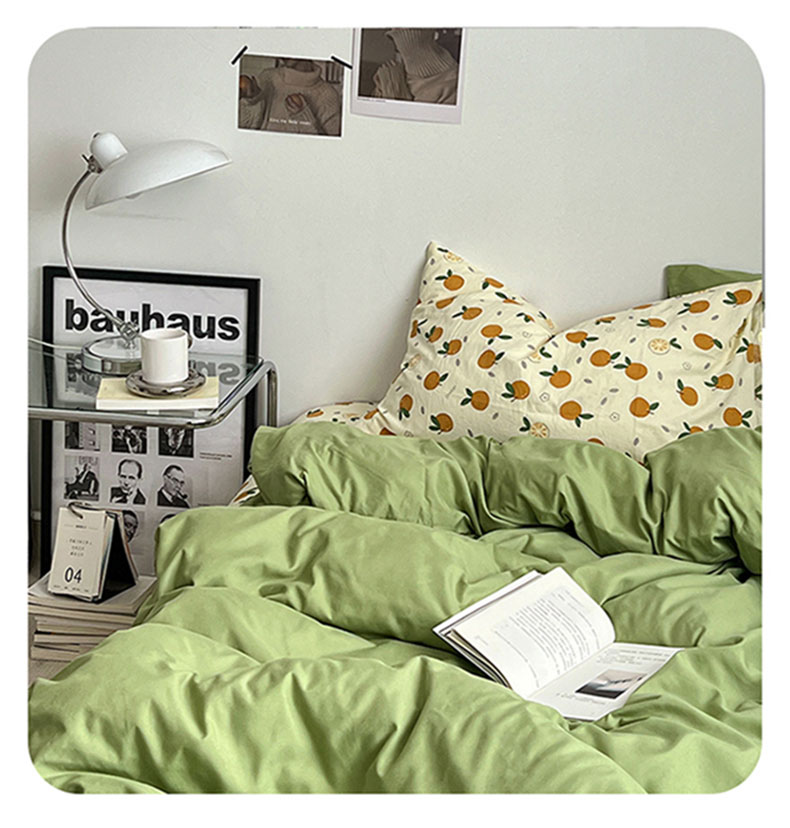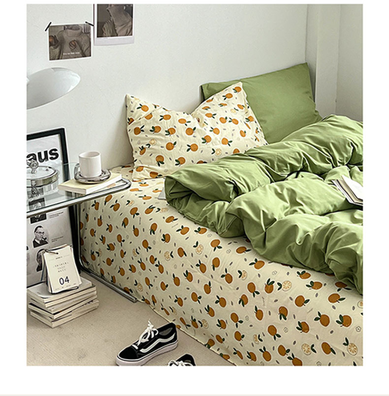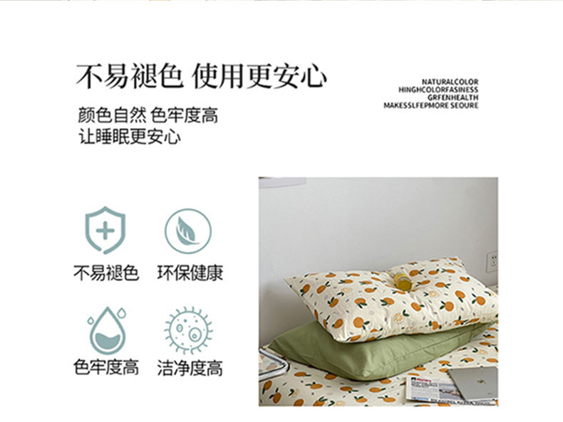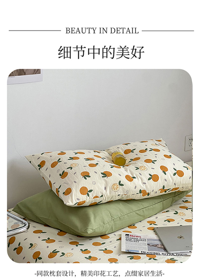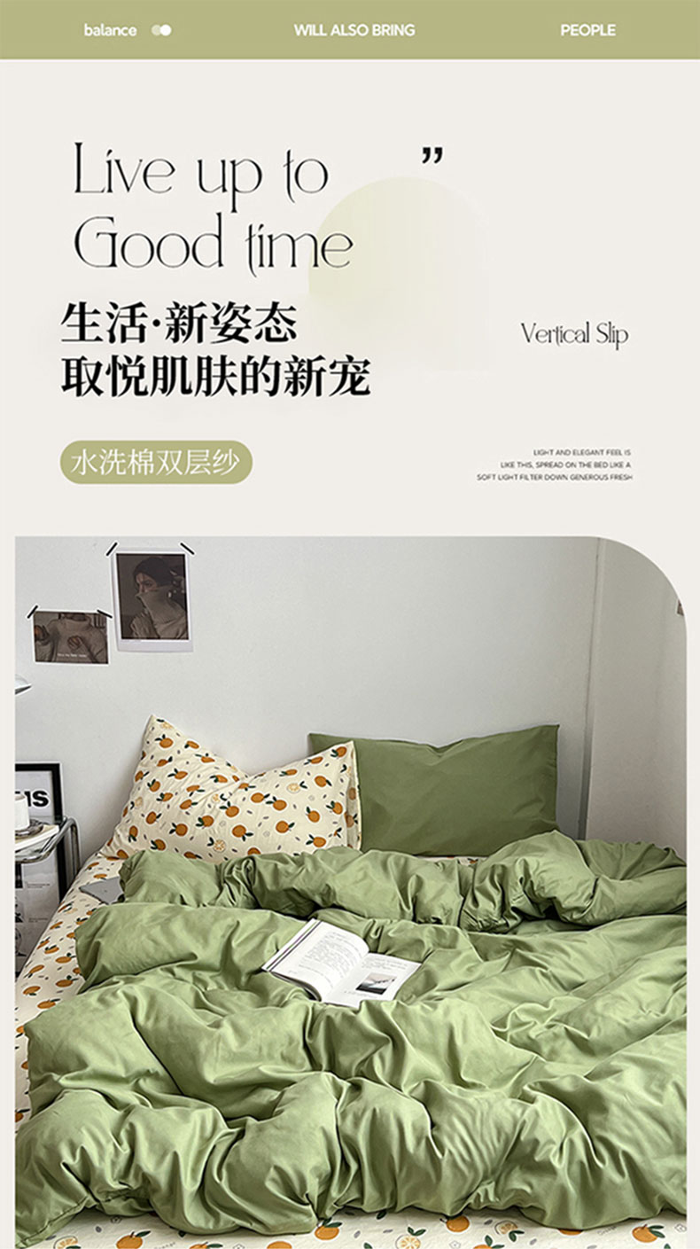 商品名称:梦嘉居 2023新款水洗棉双层纱亲肤舒适单床笠 抹茶绿+小橘子
