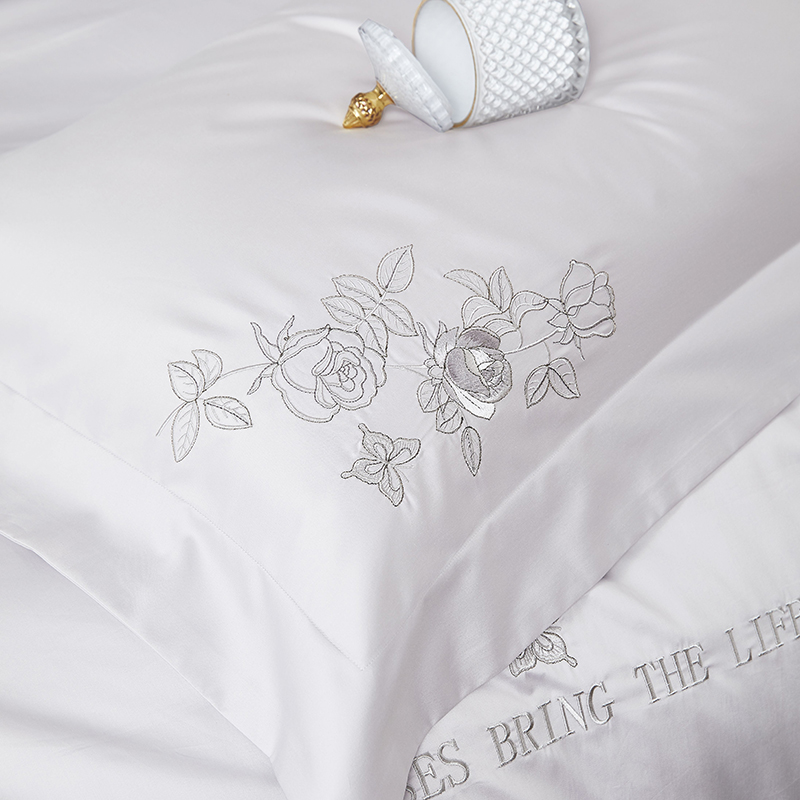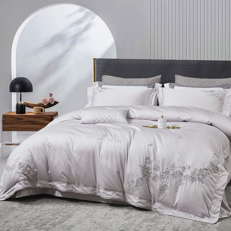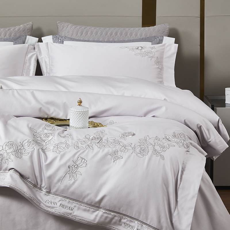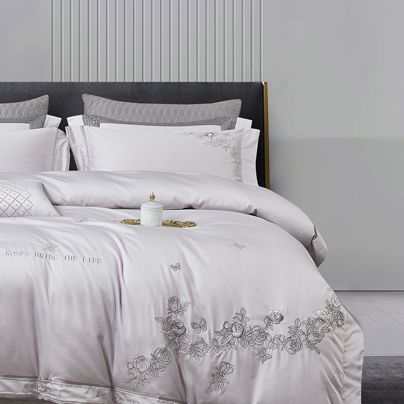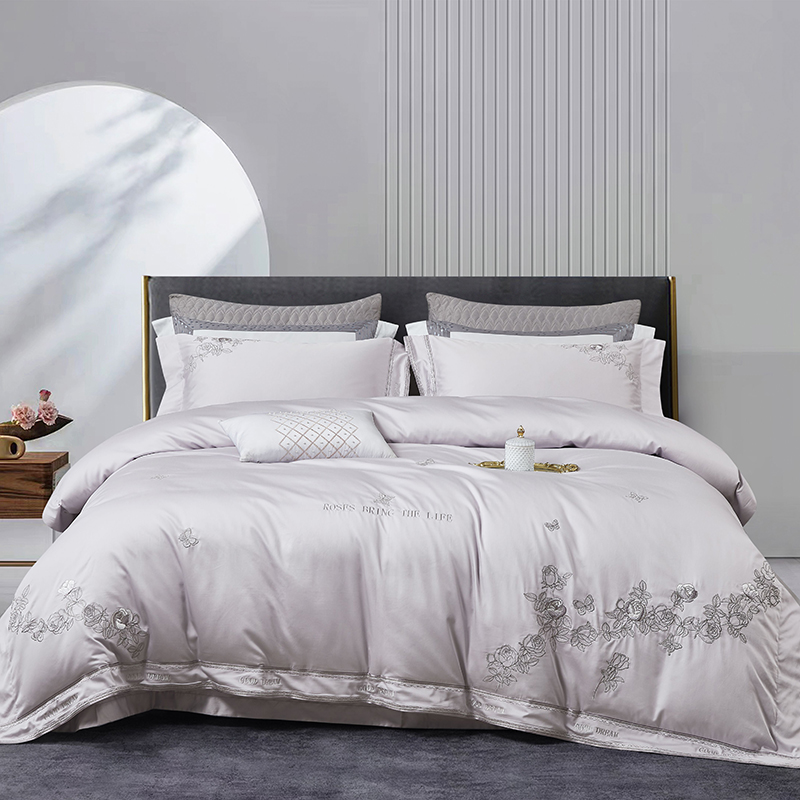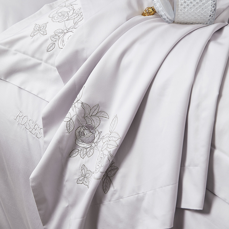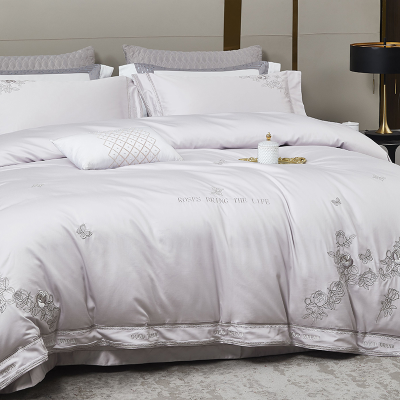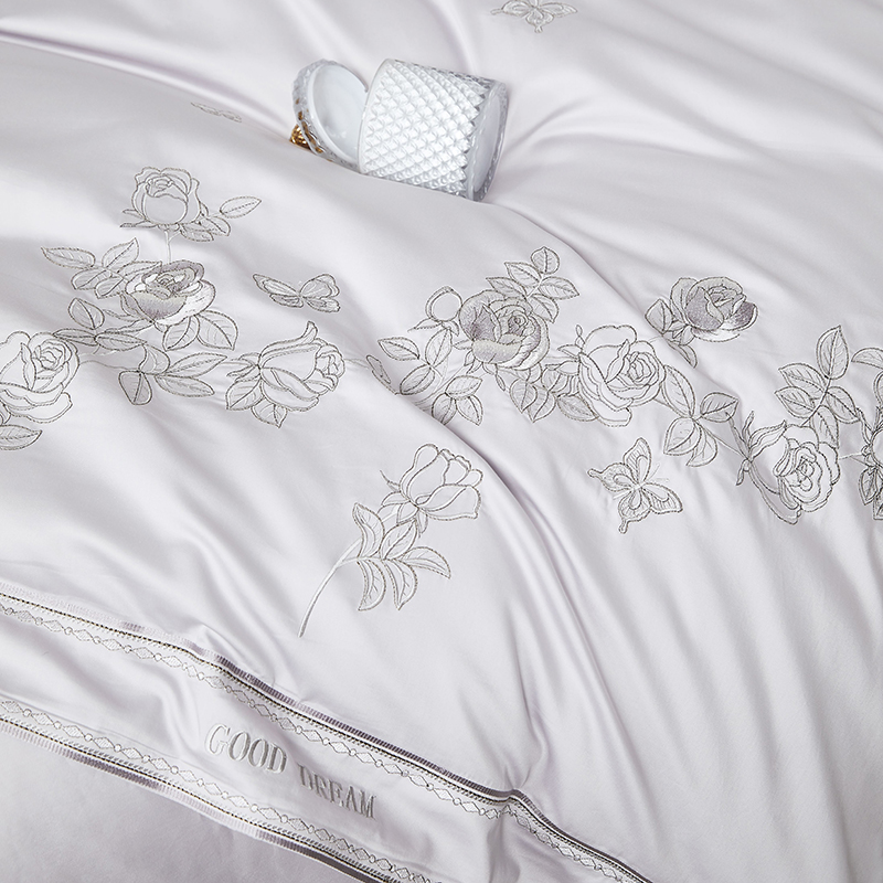 商品名称:爱情故事 2025新款100支新疆长绒棉刺绣四件套 蝶恋花(灰紫)