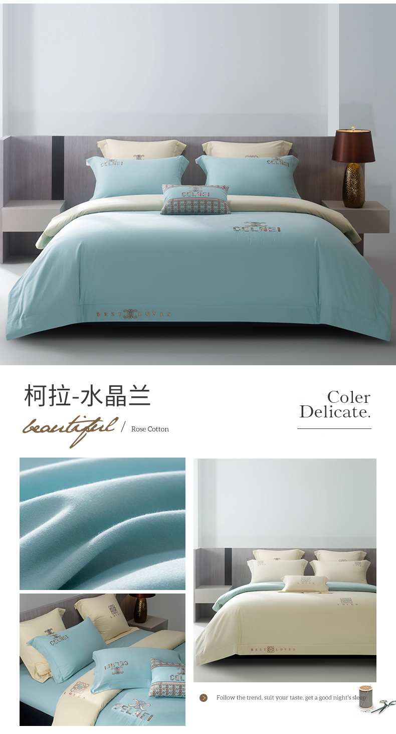 商品名称:高大尚 2023秋冬新品长绒棉磨毛高端绣花四件套-柯拉系列 水晶兰