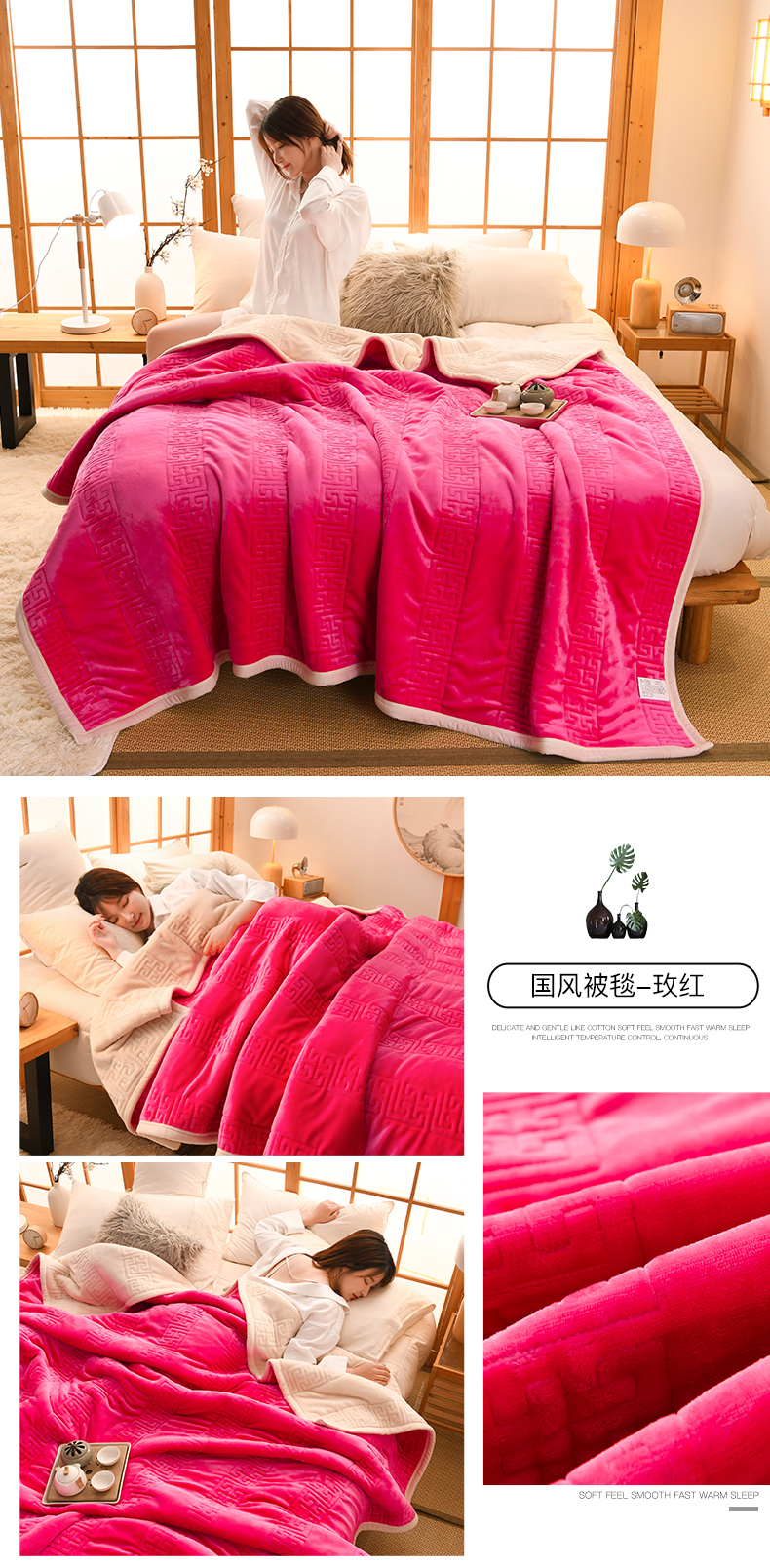 商品名称:2023新款【加厚款】国风被毯 玫红