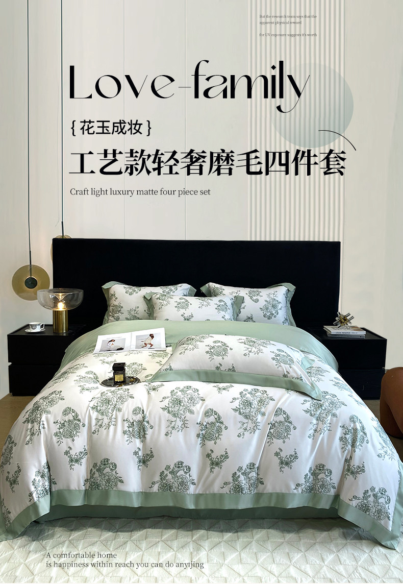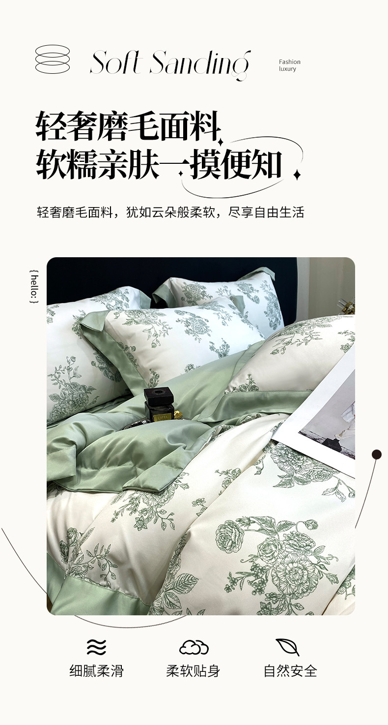 商品名称:优悦 2023新款轻奢磨毛四件套-花玉成妆 花玉成妆-绿