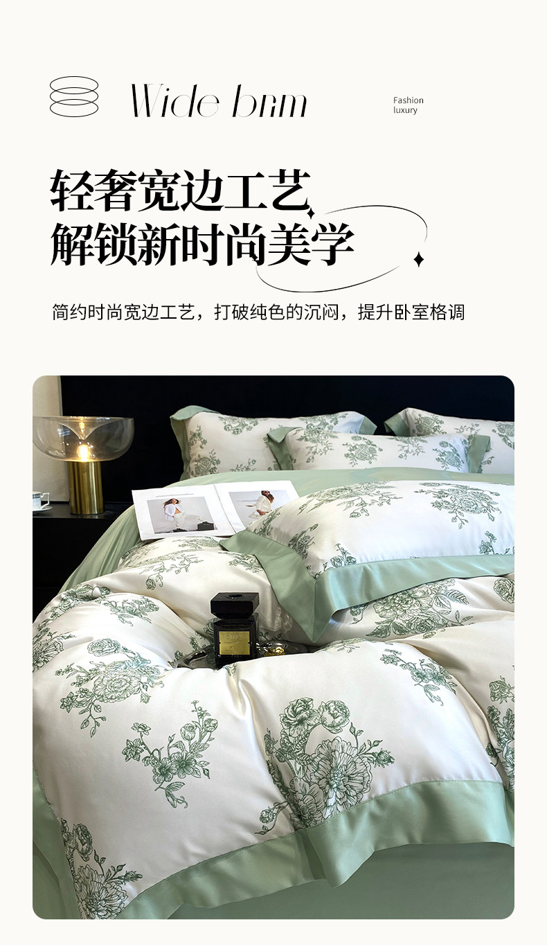 (总)优悦 2023新款水洗真丝轻奢印花款四件套,安格斯-黄,安格斯-灰,安格斯-绿,迪丽奥-灰,迪丽奥-蓝,迪丽奥-绿,浅浅叶语-灰,浅浅叶语-绿,森林物语-蓝,森林物语-绿,森绿物语-灰,云中-粉,云中-灰,云中-蓝,云中-绿