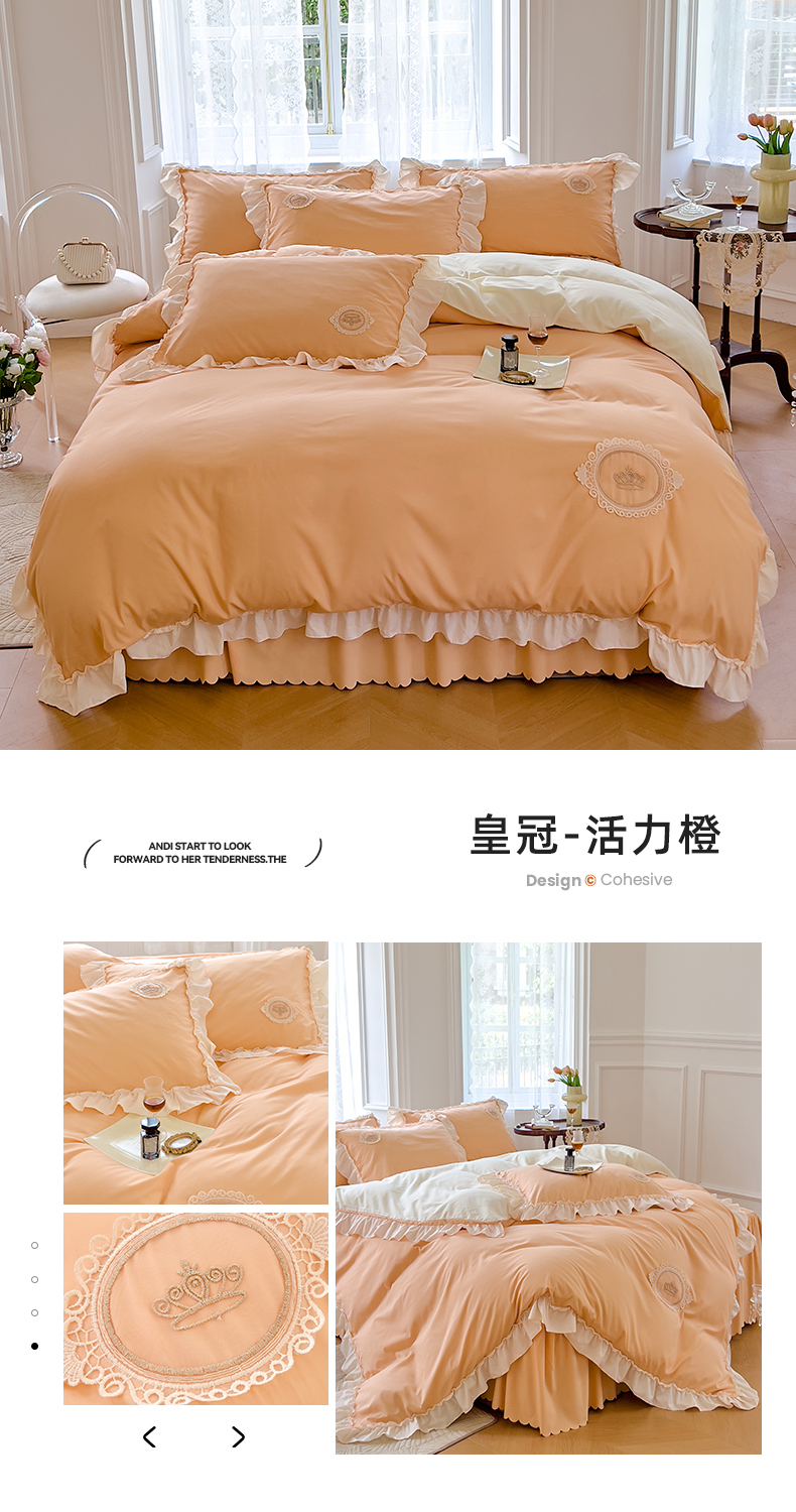 当前位置: 91家纺网 > 商品网购 > 床品套件 > 四件套 > 普通磨毛四件套 > yyds网供 2023新款韩版皇冠花边款公主风床单款床裙款四件套-风格一【有买家秀】 皇冠-活力橙