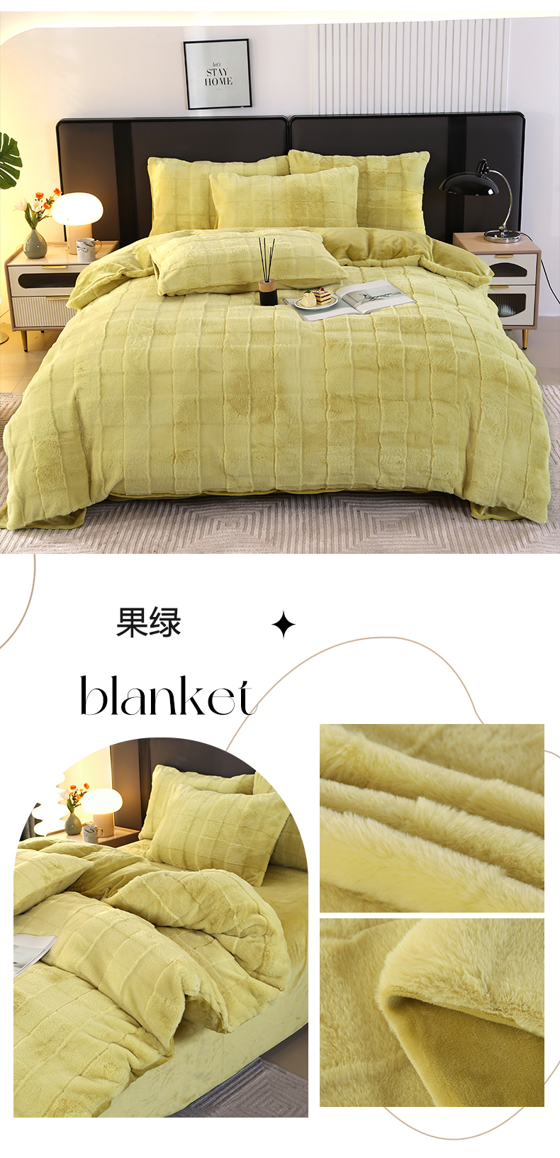 富之航家纺 2023新款兔毛牛奶绒四件套 果绿