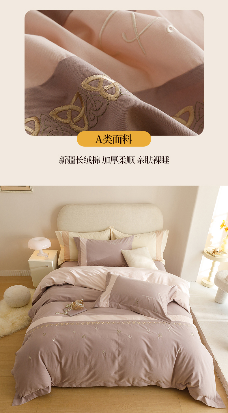 艾莱家纺 2023新款A类秋恋磨毛刺绣四件套 秋恋-烟灰紫