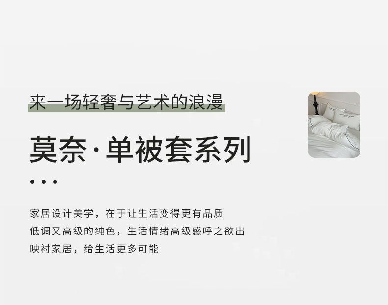 商品名称:尤米 2023新款莫奈系列水洗棉绣花麻绳款单被套 莫奈-月光白