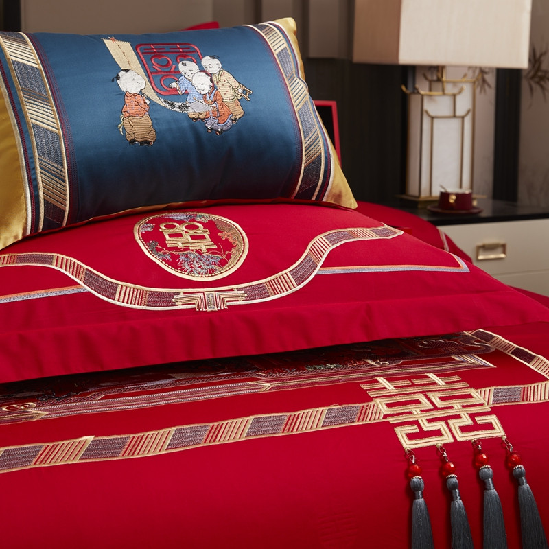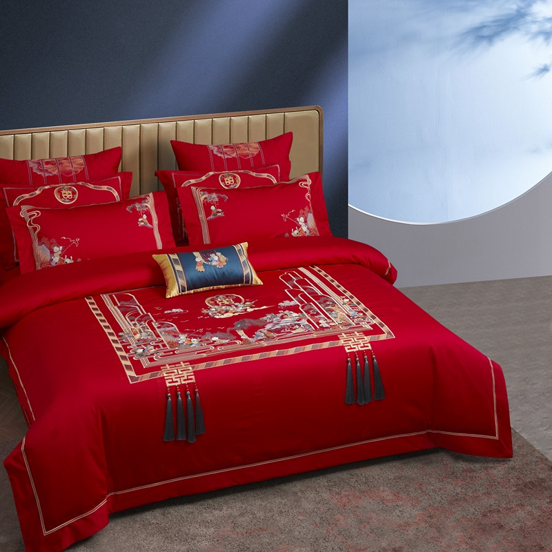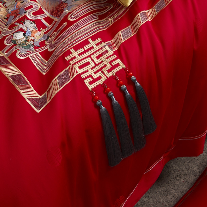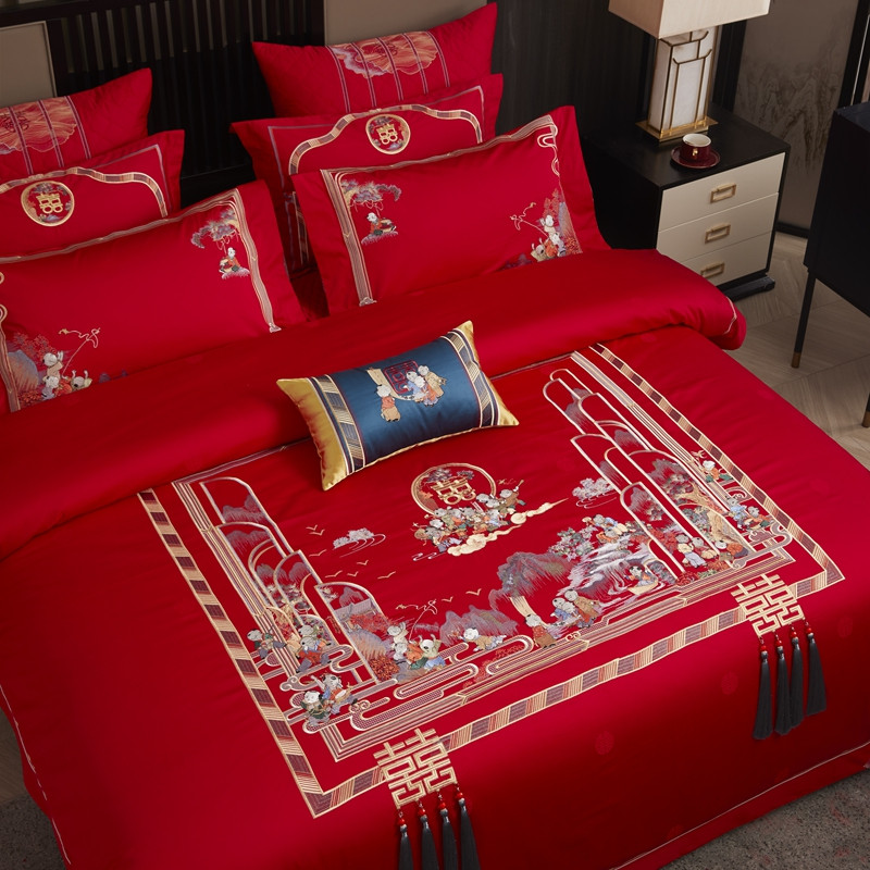 当前位置: 91家纺网 > 商品网购 > 床品套件 > 四件套 > 婚庆四件套 > 爱情故事 2025新款100支婚庆四件套棚拍百子纳福