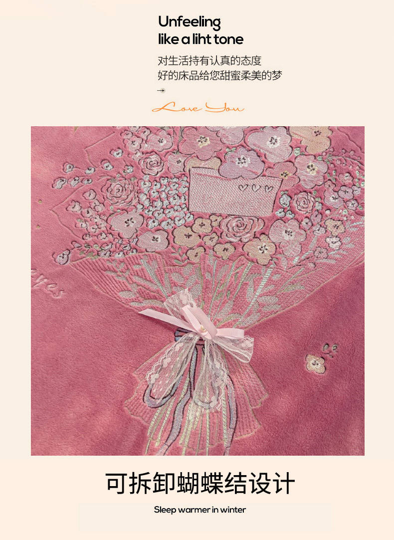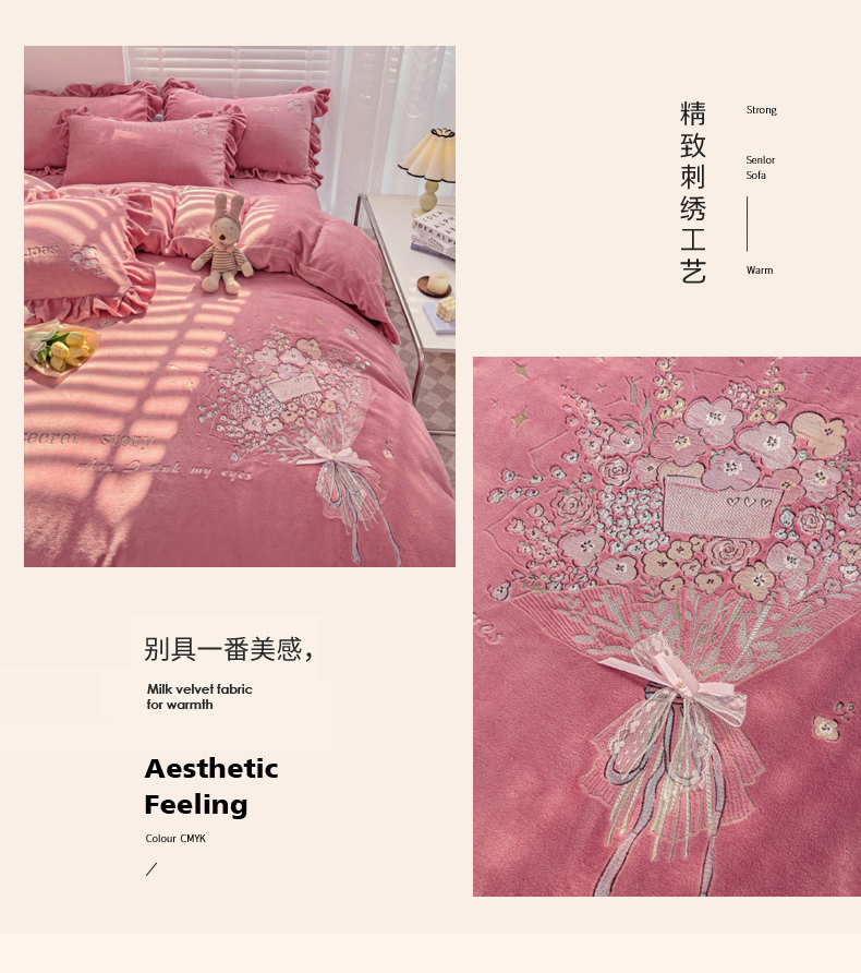 (总)星尚家纺 2024新款全消光A类230g牛奶绒韩版绣花绒四件套-绚丽花语,豆沙粉,浪漫紫,雾霾蓝,樱花粉,晨雾绿