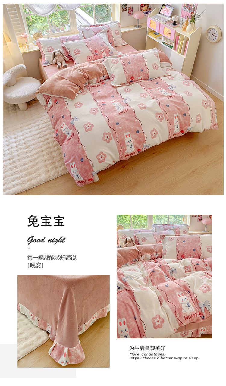 呗旺鹿 2023新款高克重加厚印花牛奶绒四件套直播 兔宝宝