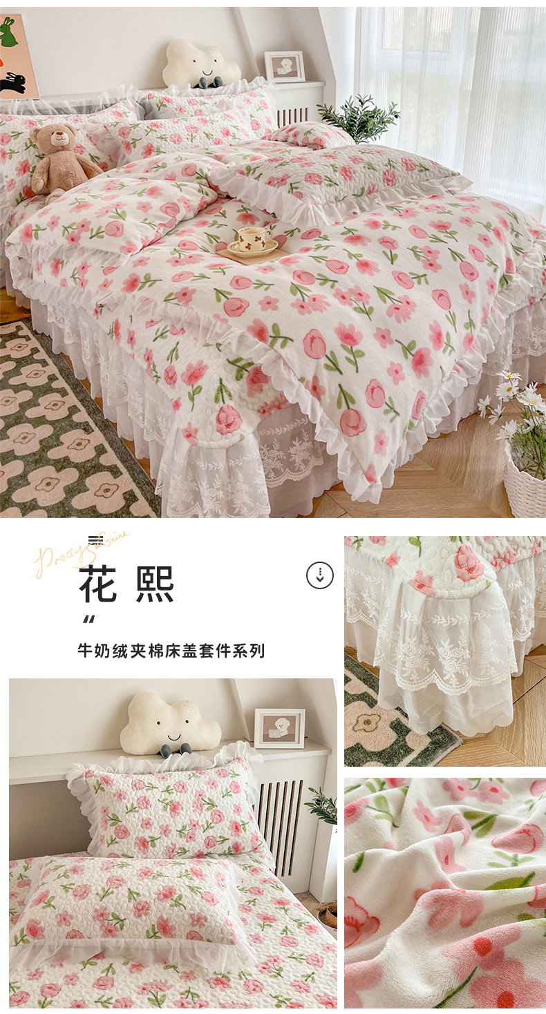 商品名称:添越 2024新款牛奶绒夹棉床盖三件套四件套 花熙