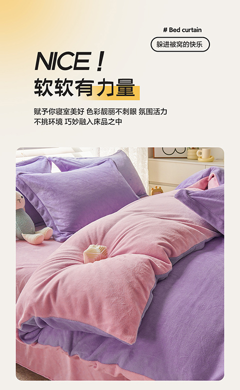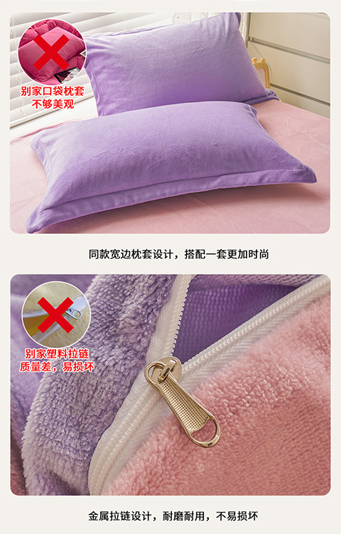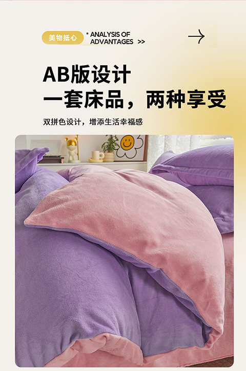 当前位置: 91家纺网 > 商品网购 > 床品套件 > 四件套 > 牛奶绒四件套 > 慕晨纯色牛奶绒法莱绒拼色三四件套单被套 梦幻紫+奶油粉