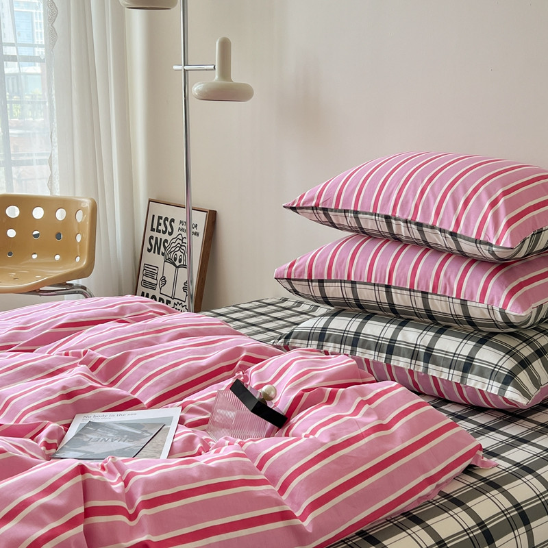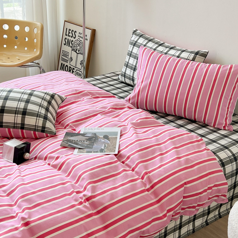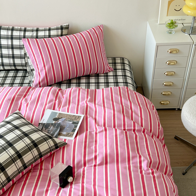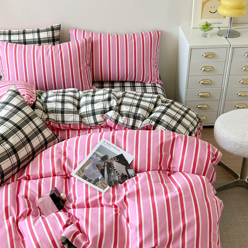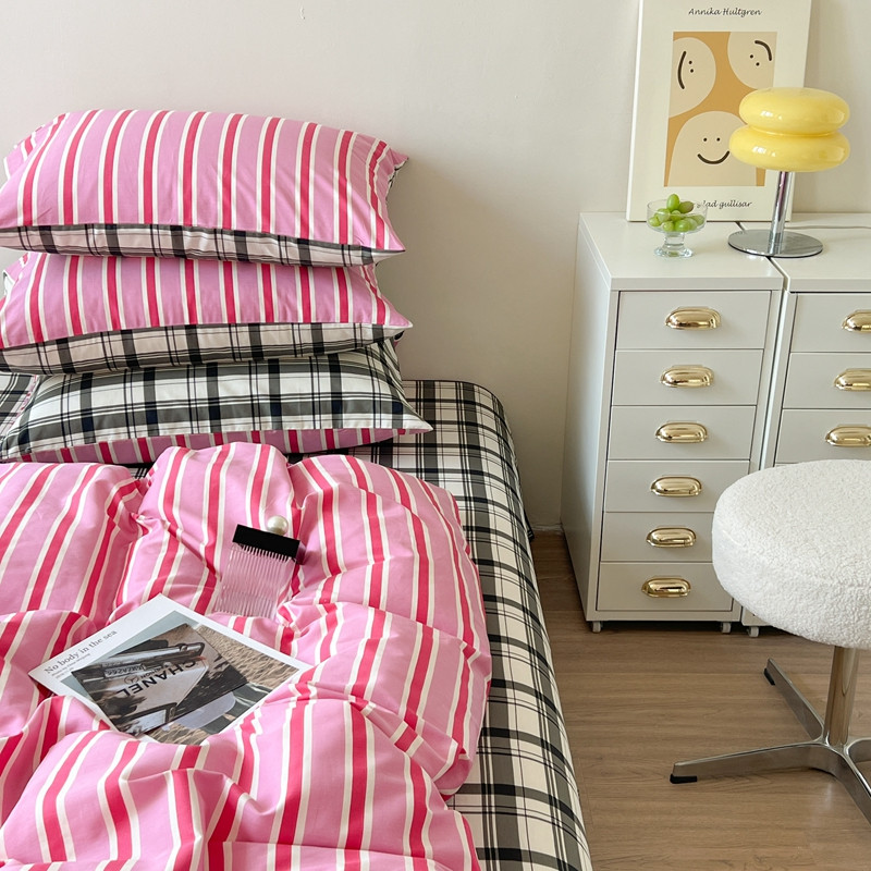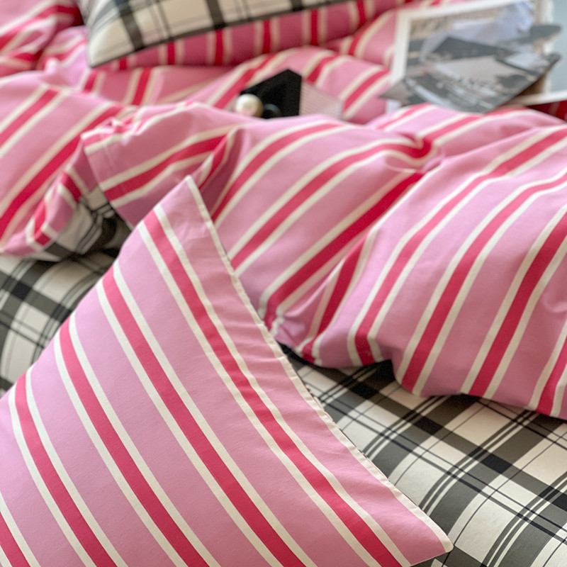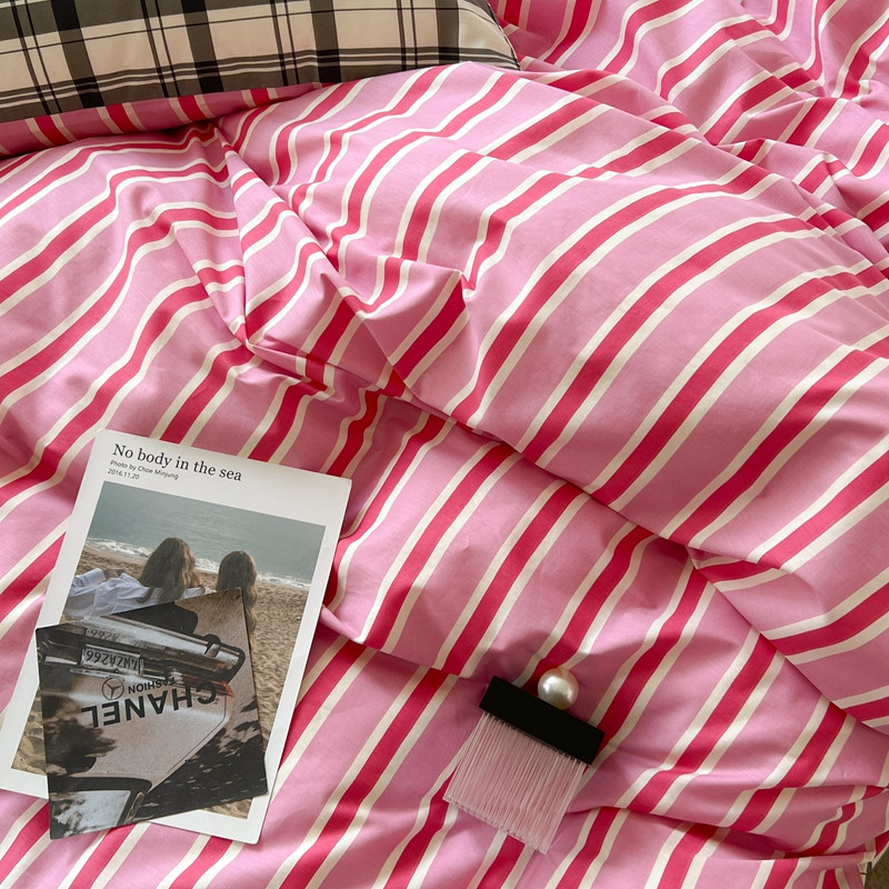 时年 2022新款全棉40支13372ins条纹款四件套 复古奶绿,复古奶绿