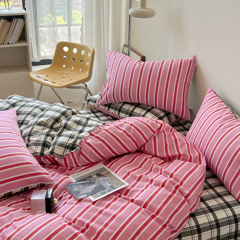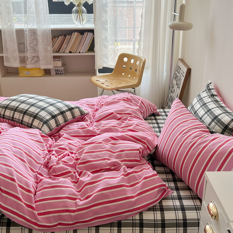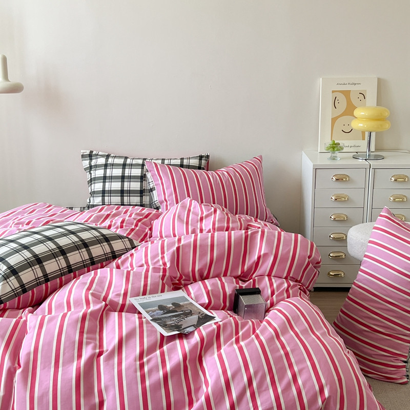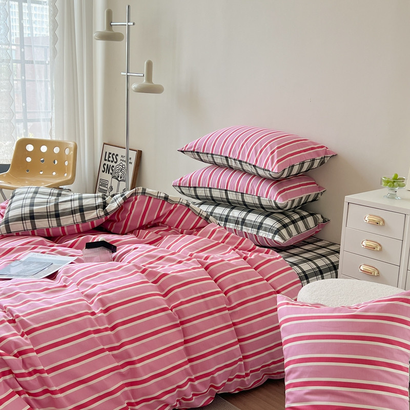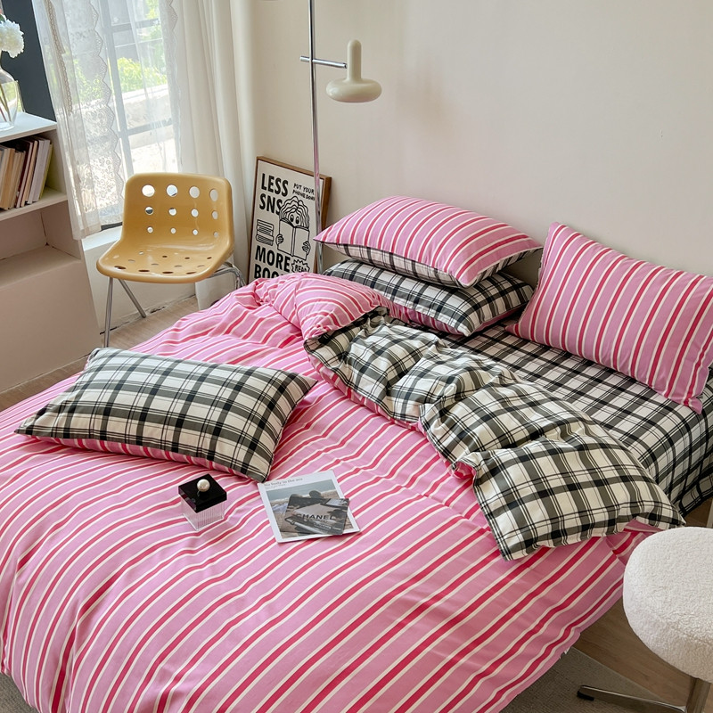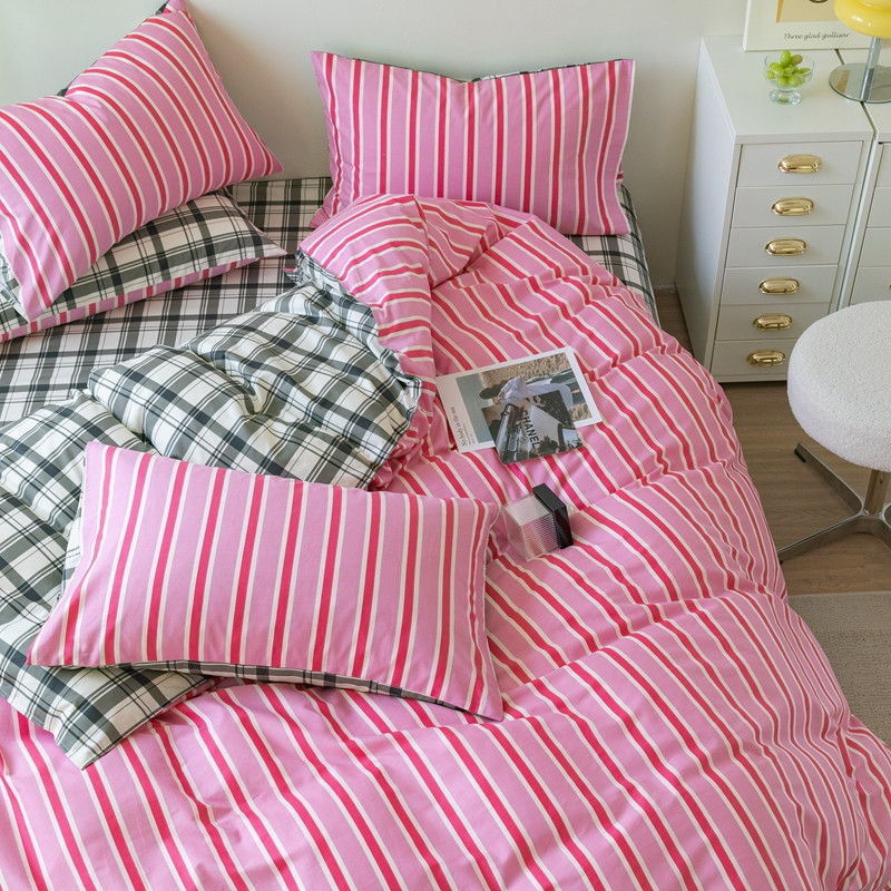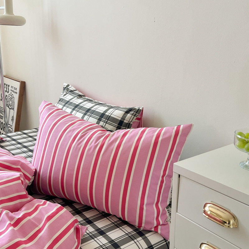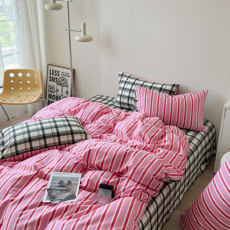 时年 2022新款全棉40支13372ins条纹款四件套 复古奶绿,复古奶绿