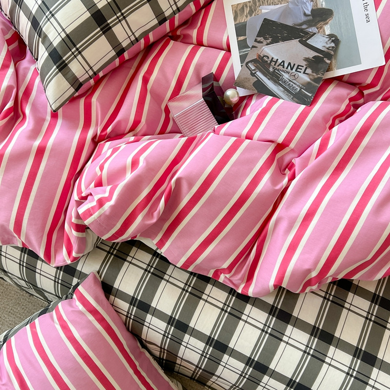 (总)时年2022新款全棉40支13372ins条纹款四件套,复古钴蓝,复古奶绿