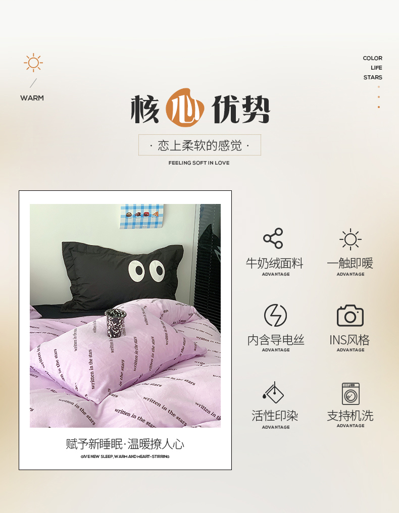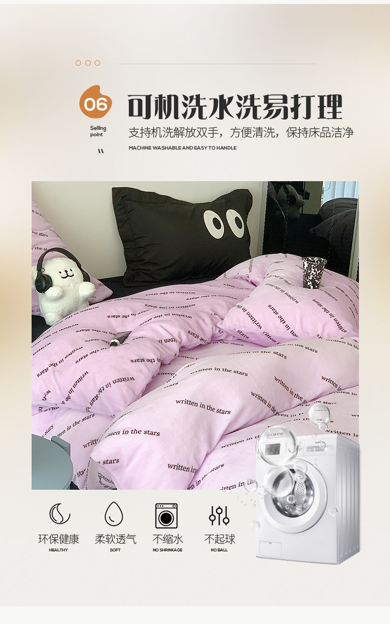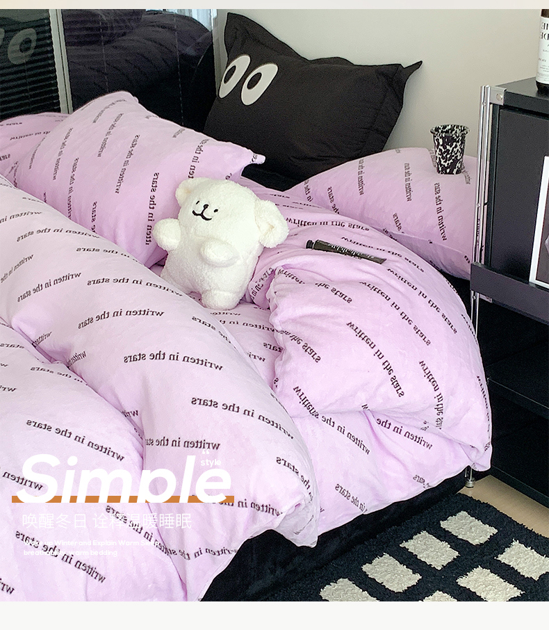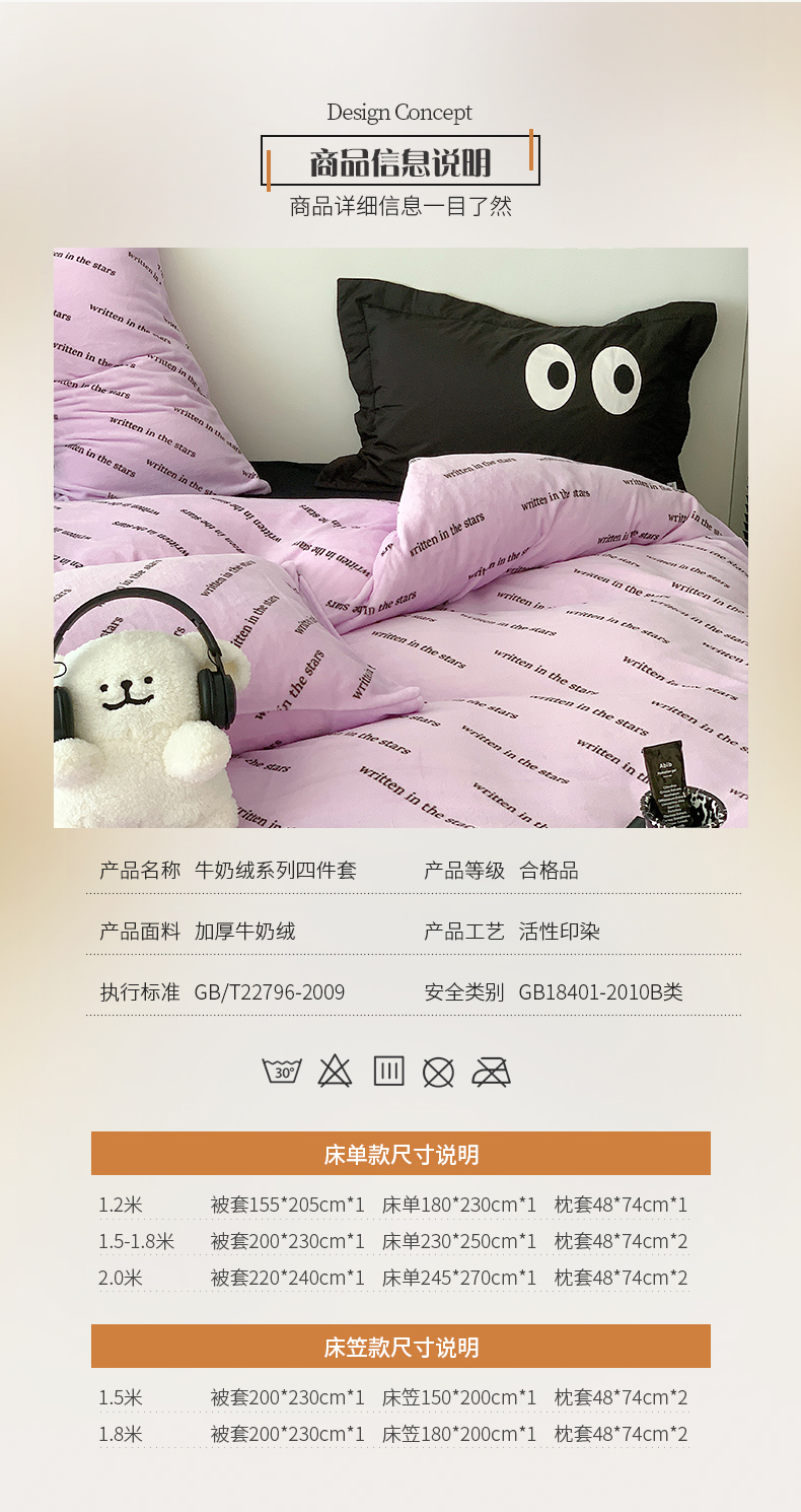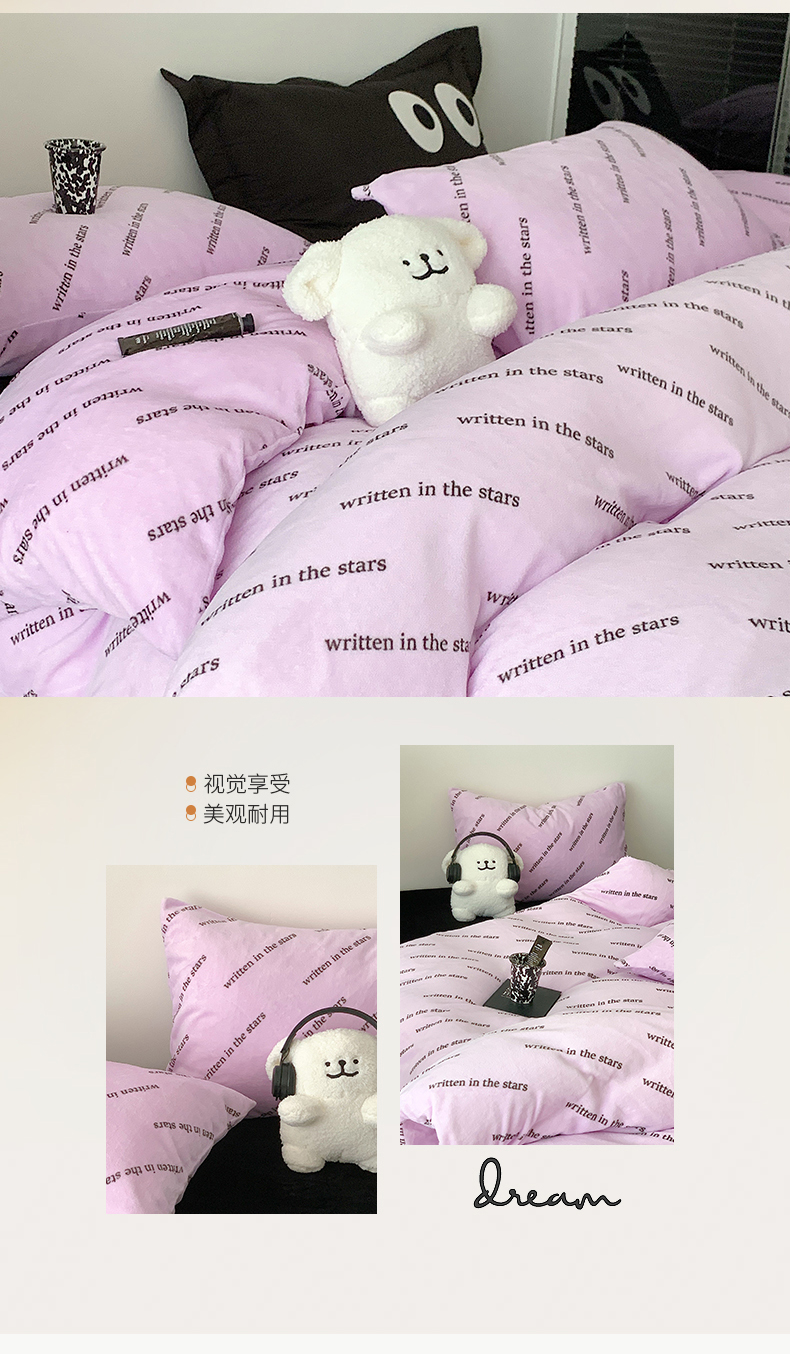 当前位置: 91家纺网 > 商品网购 > 床品套件 > 四件套 > 牛奶绒四件套 > 桃子家居 2023新款ins甜酷渐变字母y2k风高克重牛奶绒四件套 绒-百特紫黑