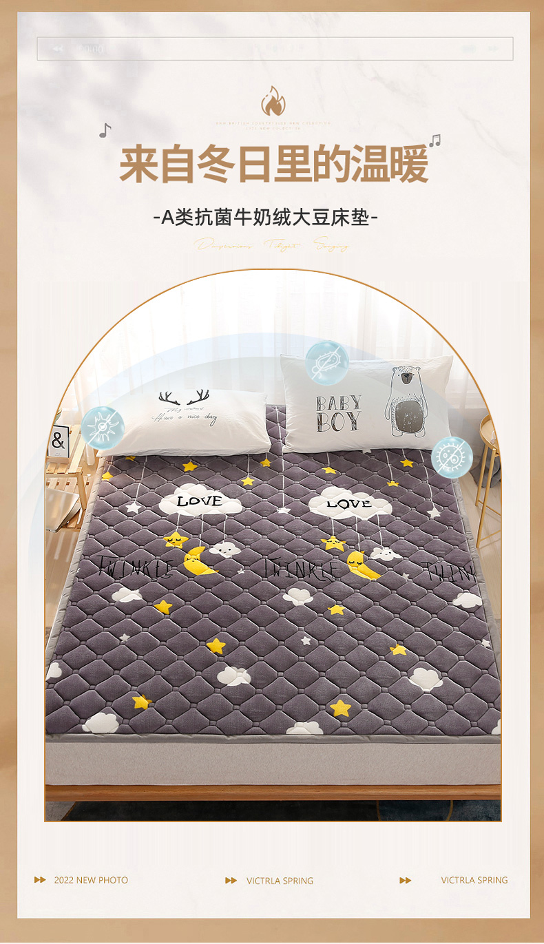 商品名称:东宇 2024年新款A类抗菌牛奶绒大床加厚床垫 晚安