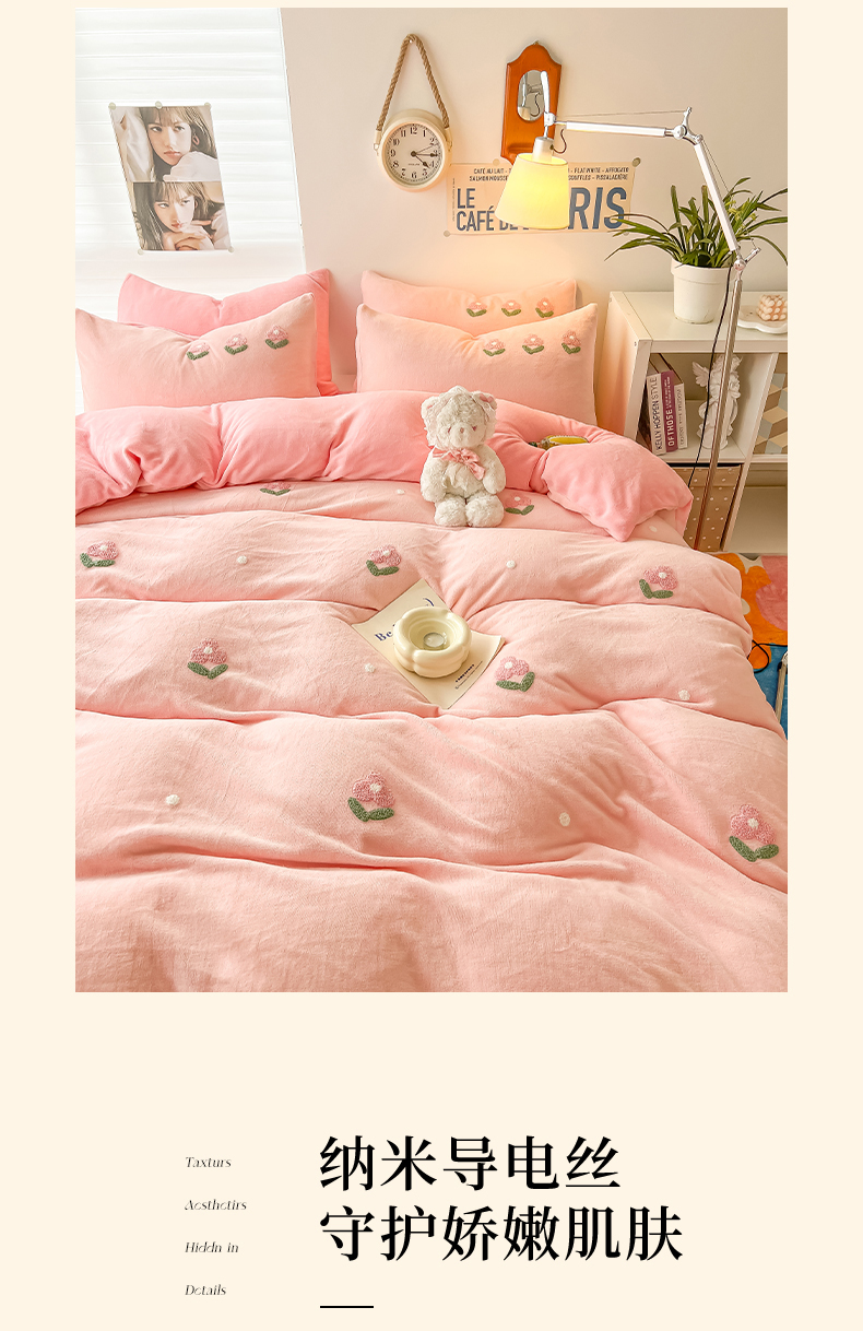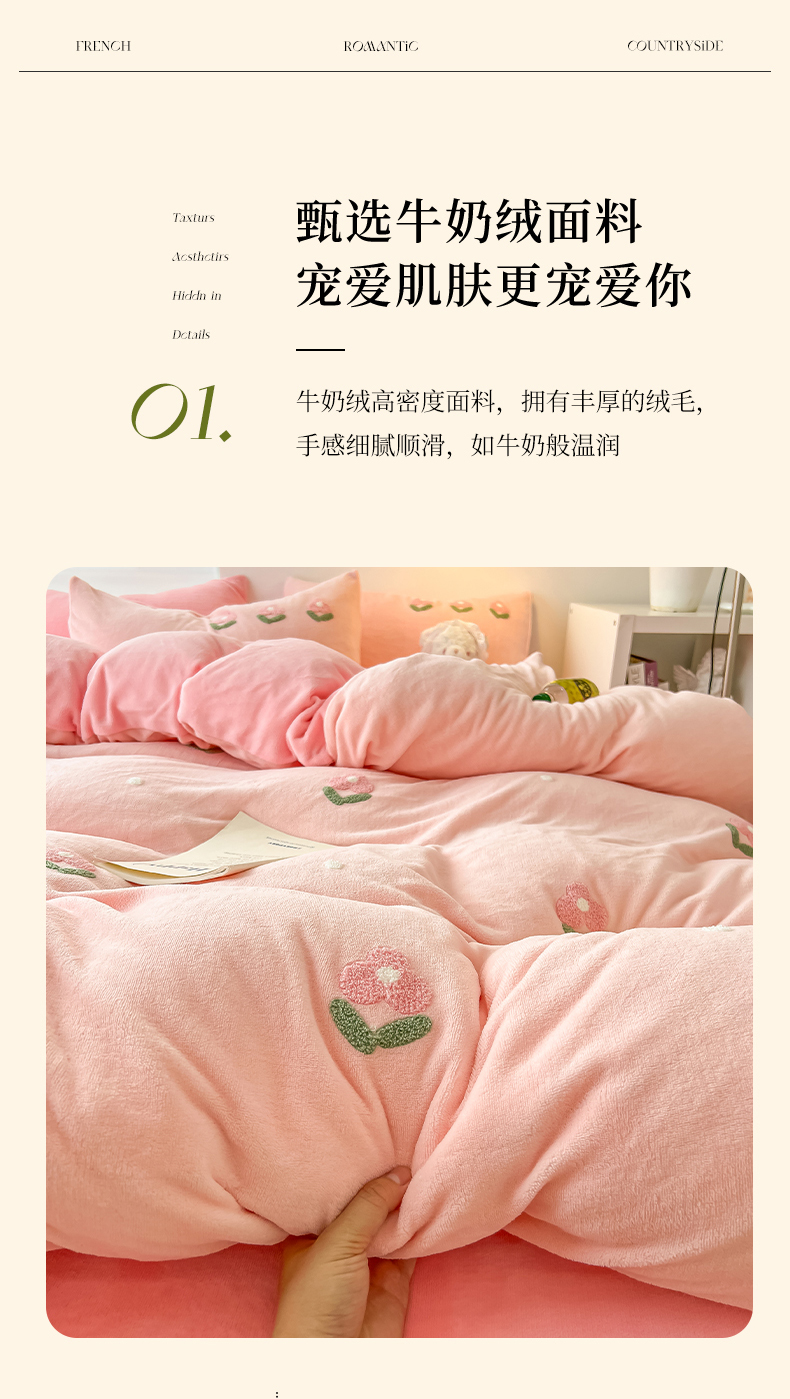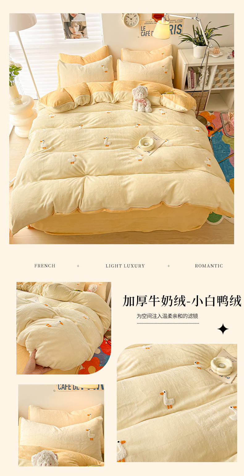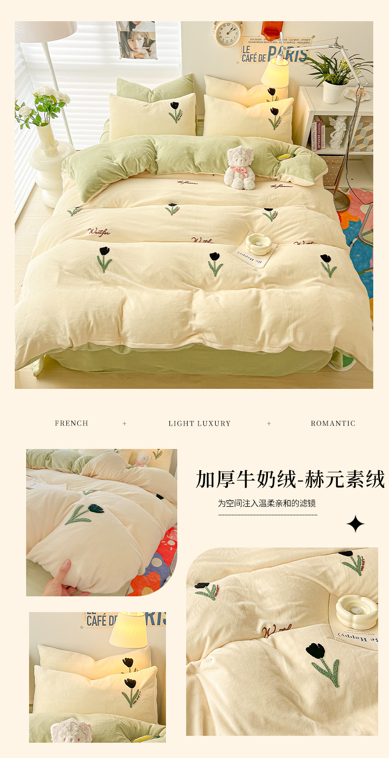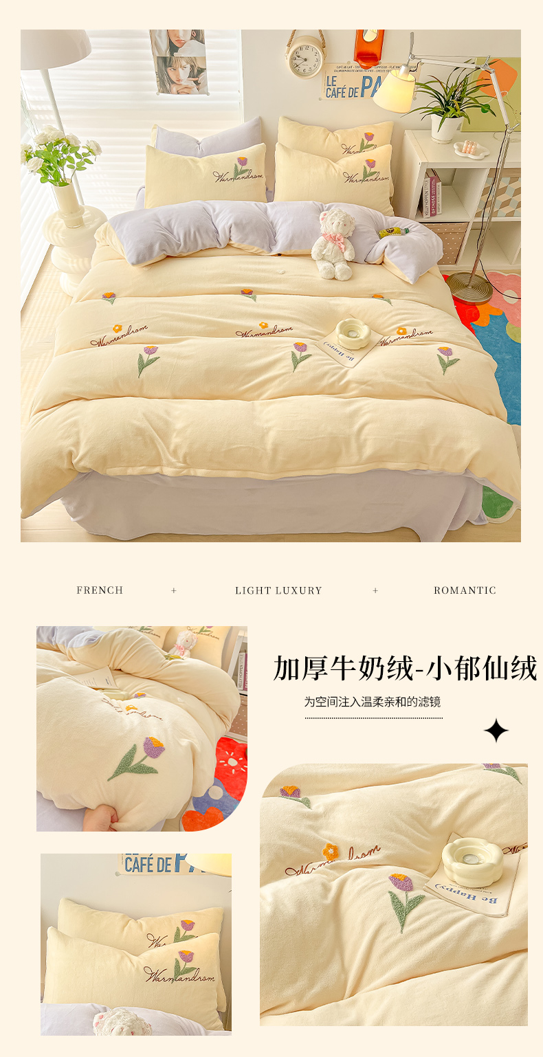 (总)韩都 2023新款冬季加厚牛奶绒毛巾绣四件套