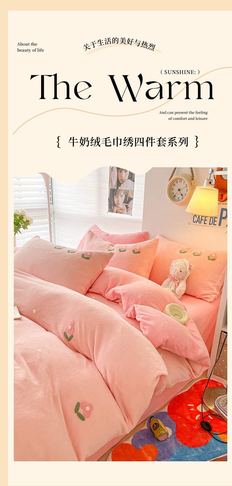 (总)韩都家居 2025新款高克重萌系牛奶绒毛巾绣四件套,可爱猫咪,帕帕狗,毛毛狗,欢乐仔仔