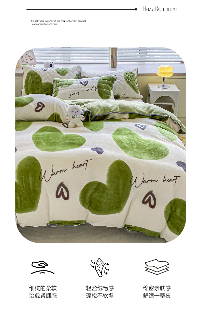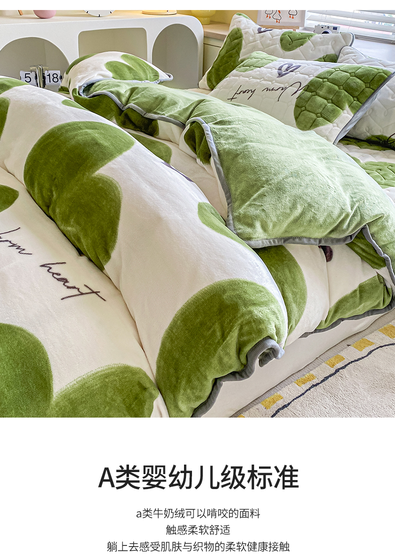 卡伦家纺 2025新款A类牛奶绒印花被套 心相印
