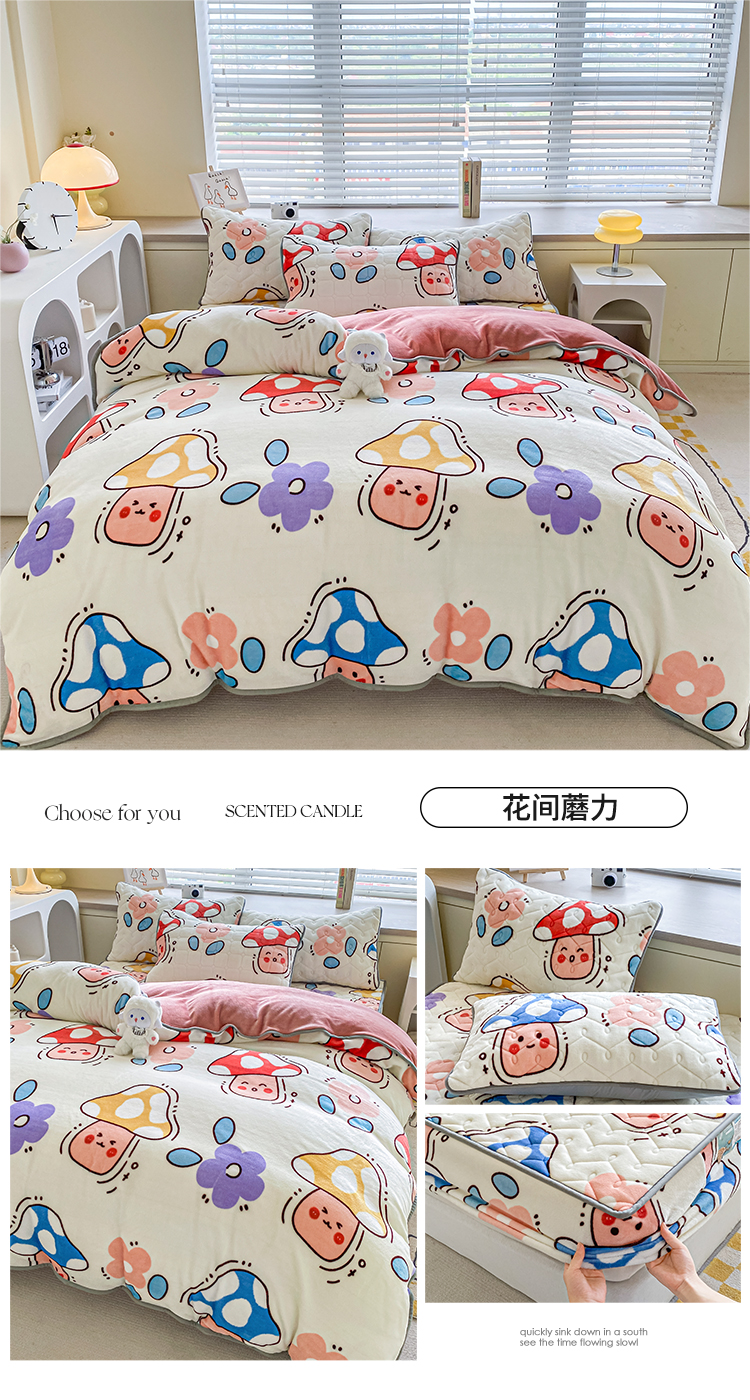 商品名称:卡伦家纺 2025新款A类牛奶绒印花被套 花间蘑力