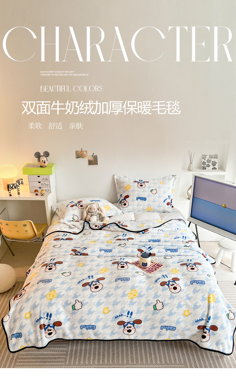 当前位置: 91家纺网 > 商品网购 > 床品套件 > 三件套 > 寐居家纺 2023新款双面牛奶绒毛毯 毛毯-皮皮狗