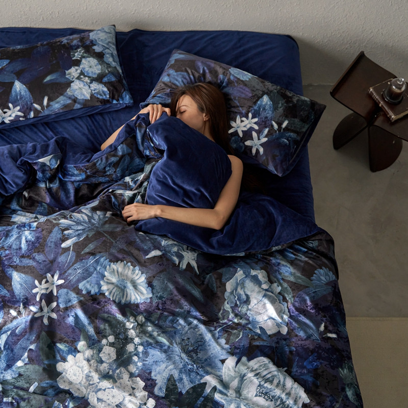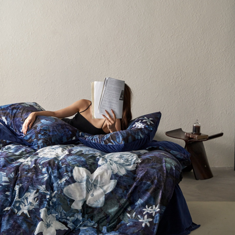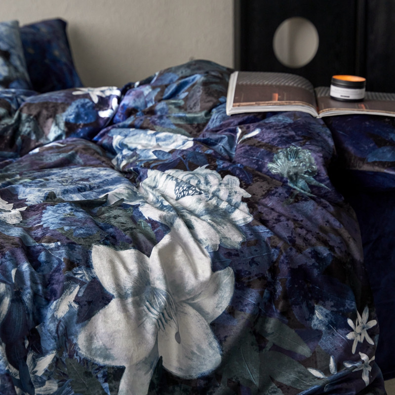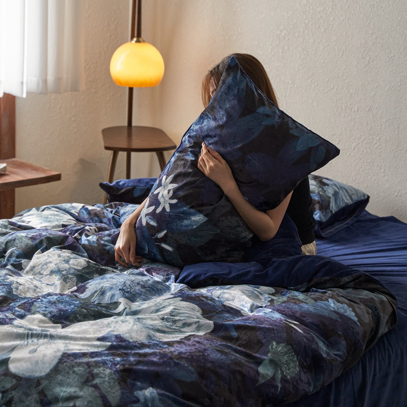 当前位置: 91家纺网 > 商品网购 > 床品套件 > 四件套 > 牛奶绒四件套 > 安莱生活 2023秋冬新品数码印花绒四件套 花戎月影