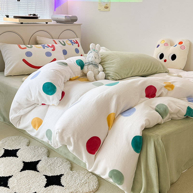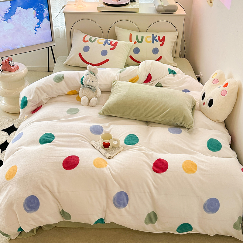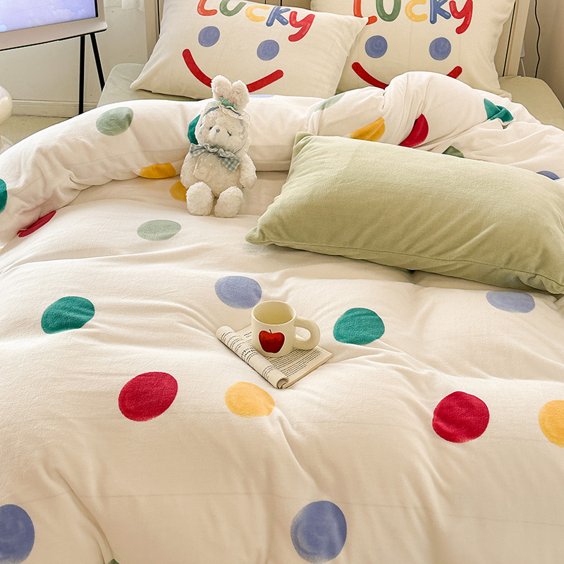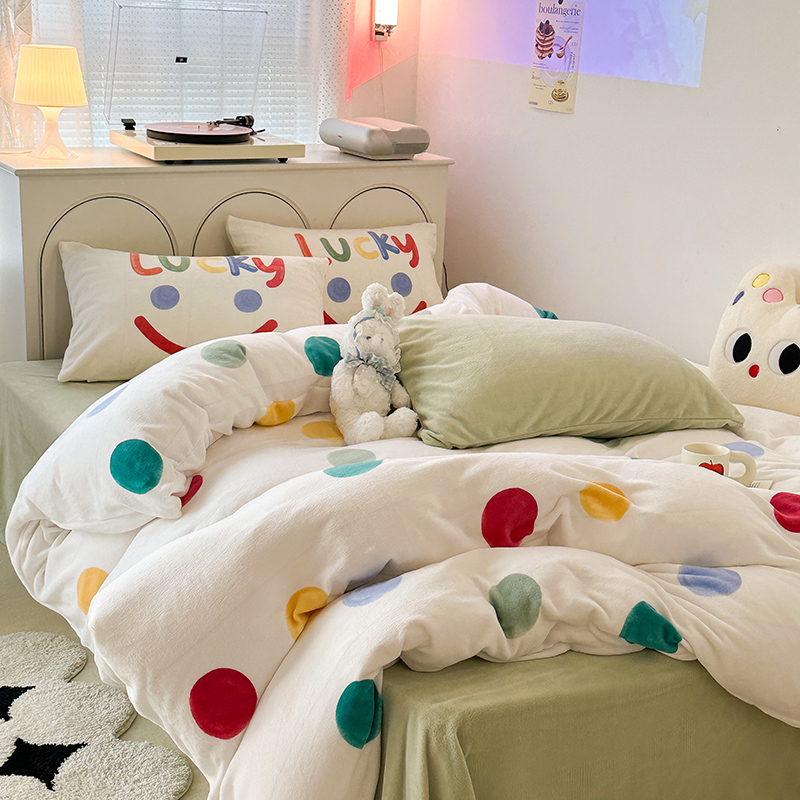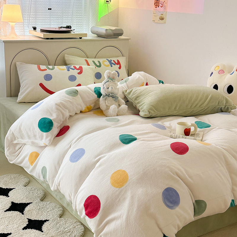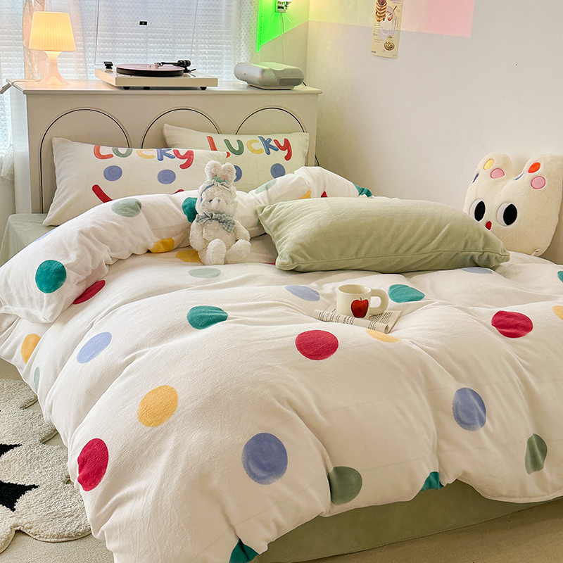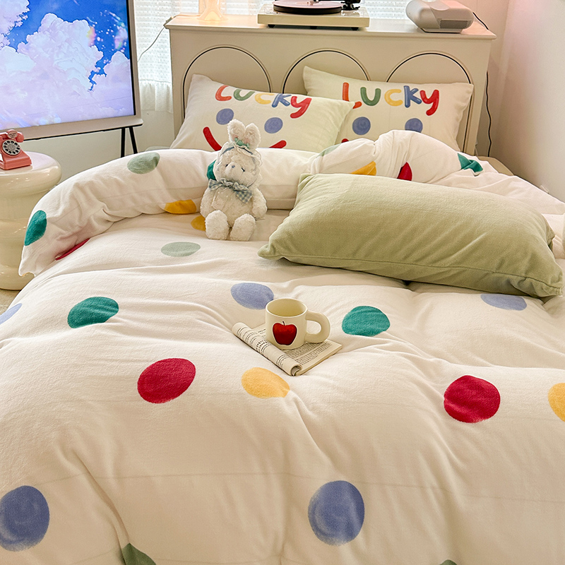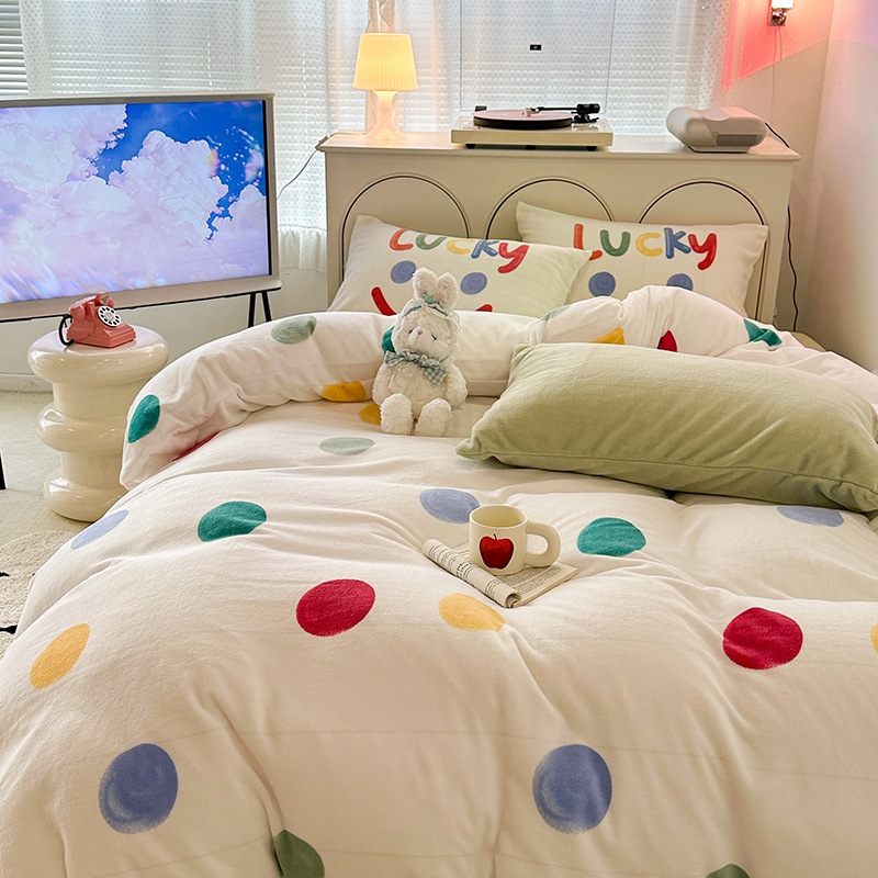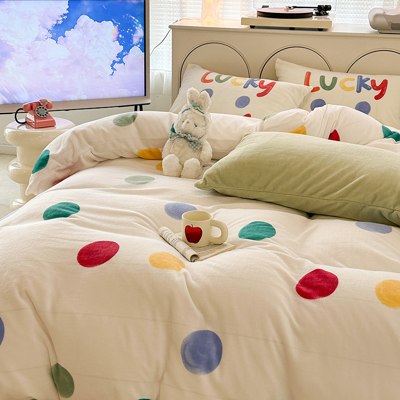 昔可家纺 2023新款大版印花枕套牛奶绒系列四件套 彩色波点
