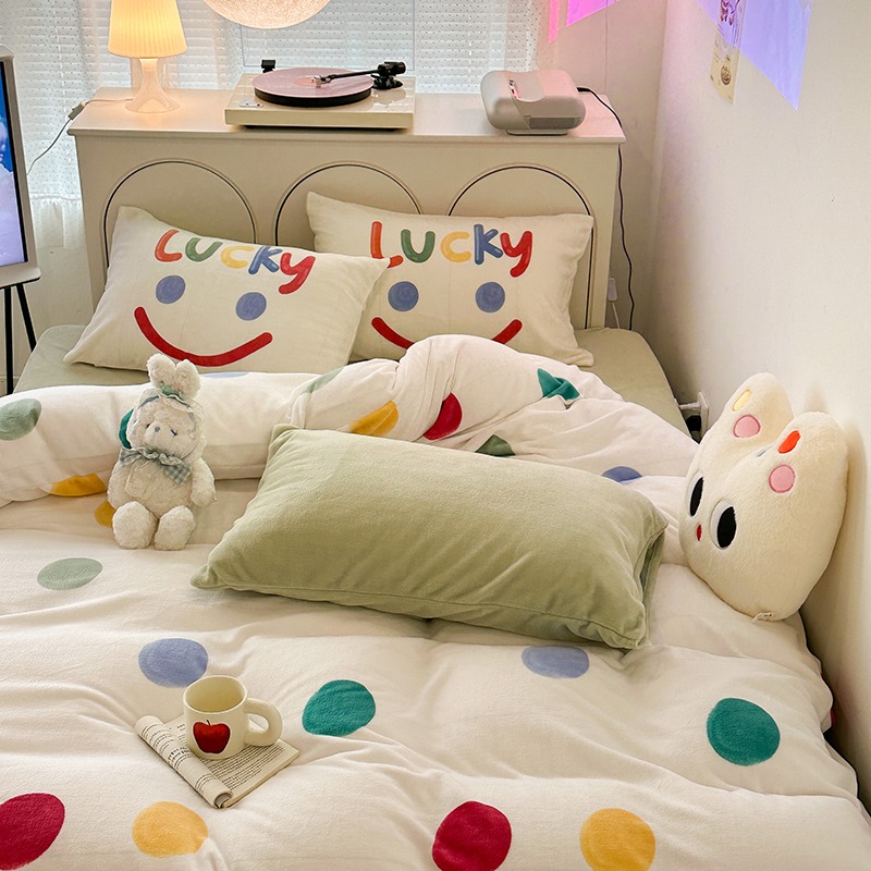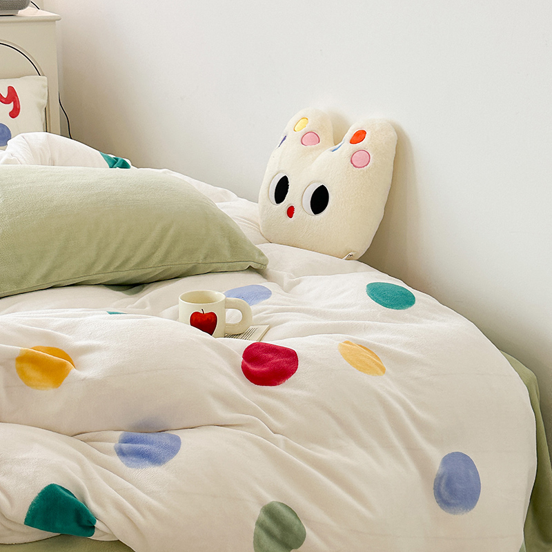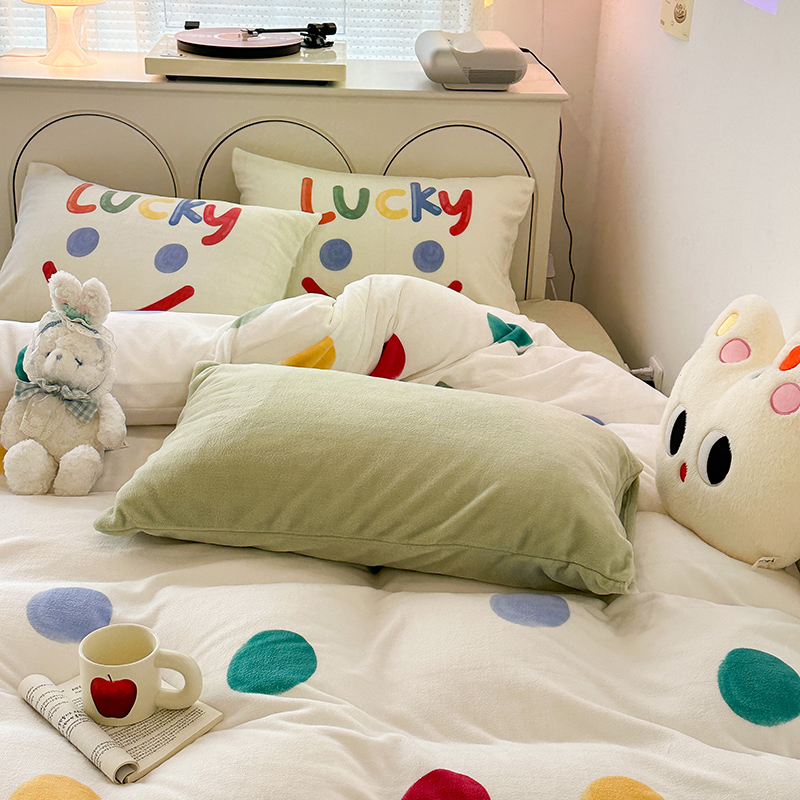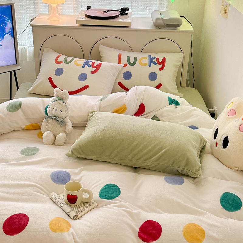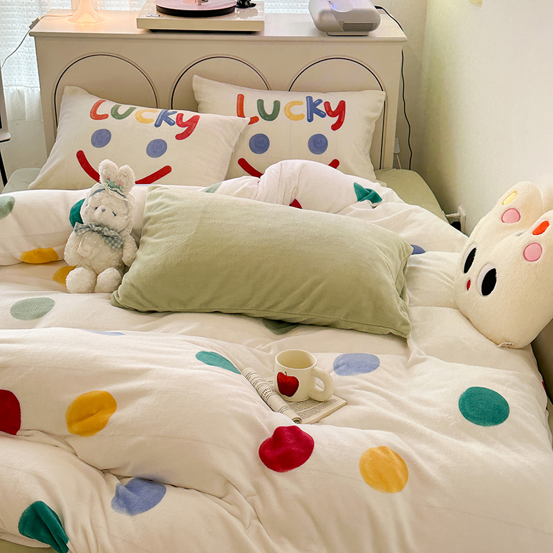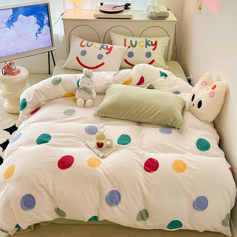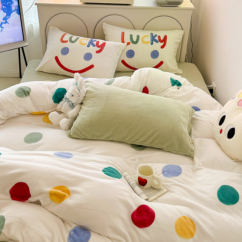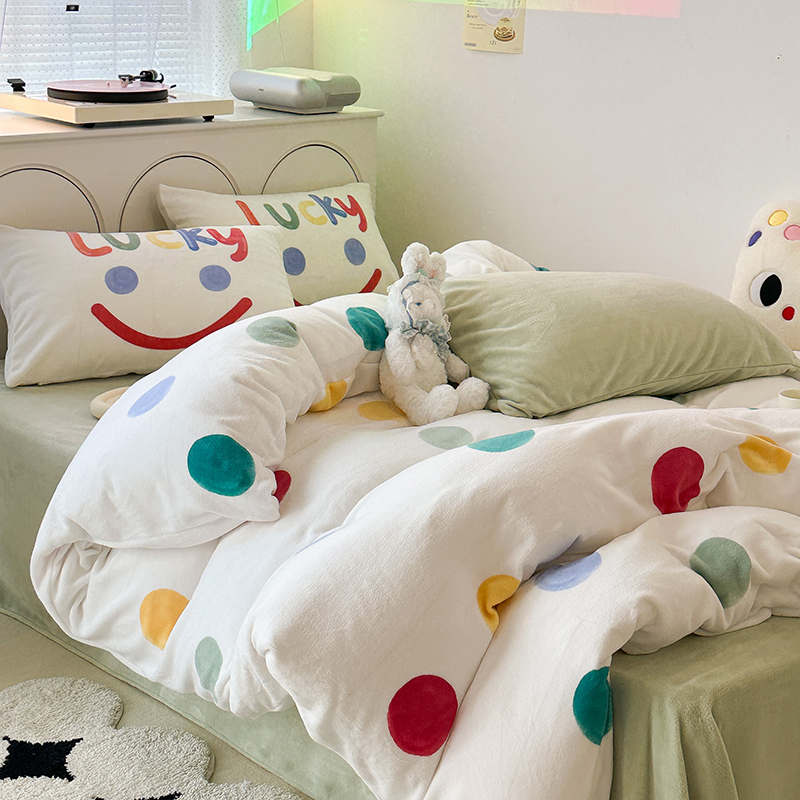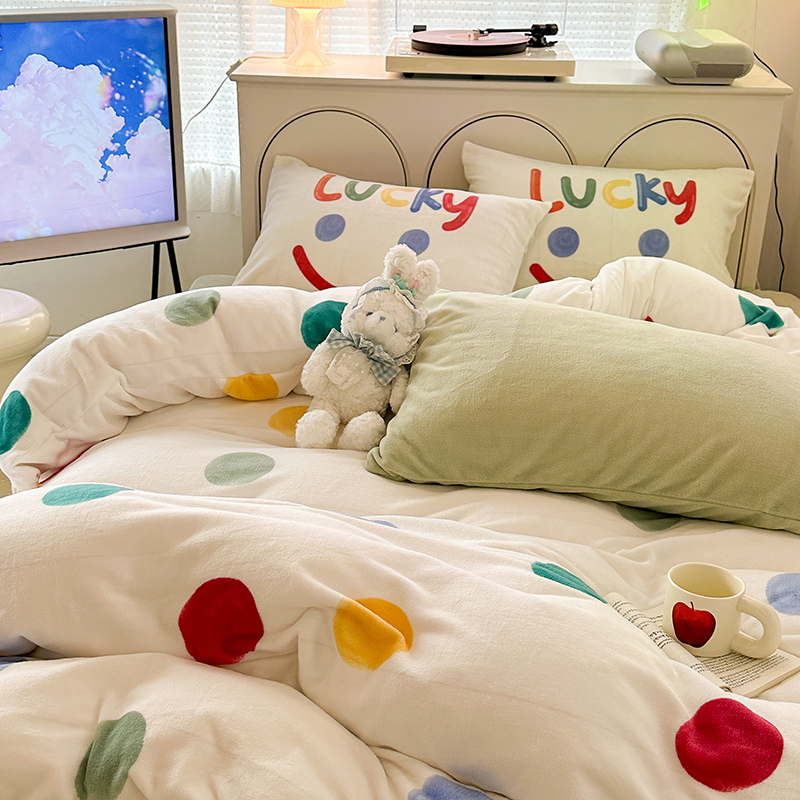 昔可家纺 2023新款大版印花枕套牛奶绒系列四件套 彩色波点