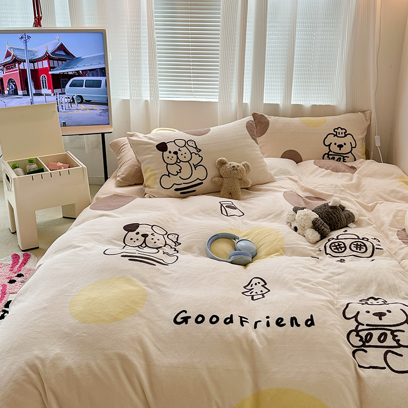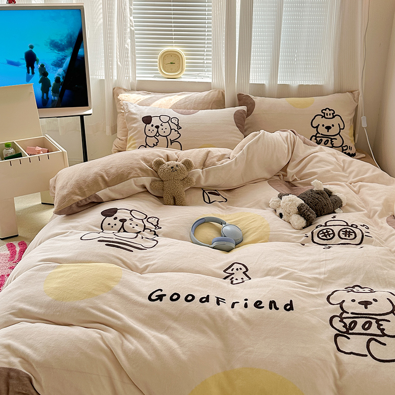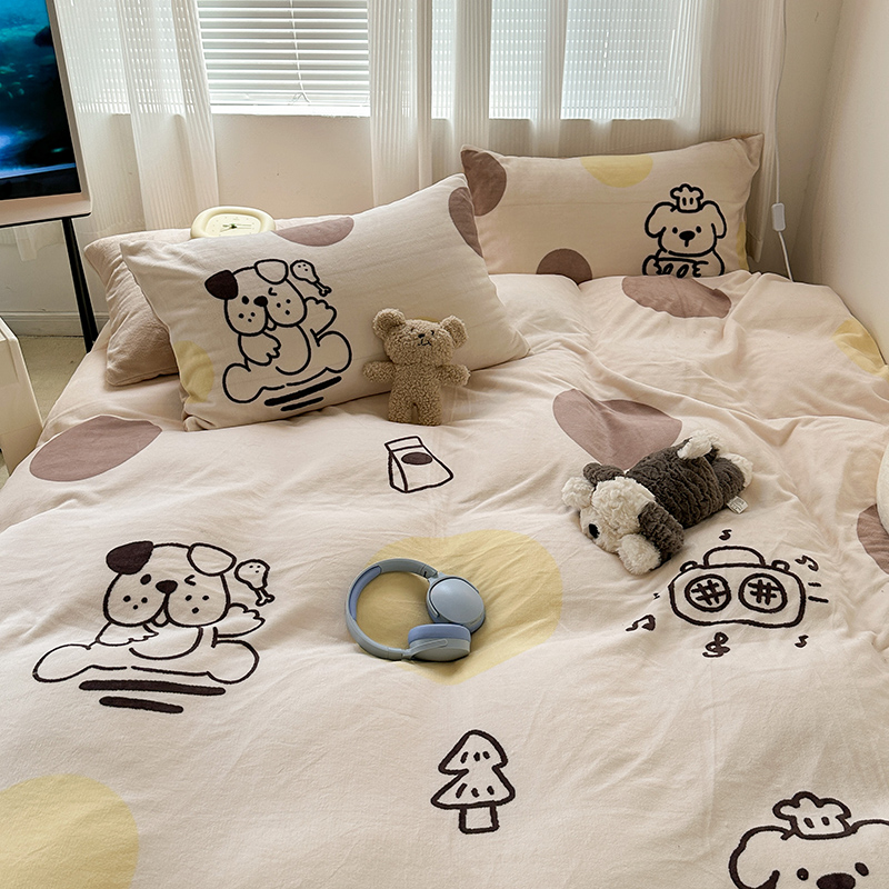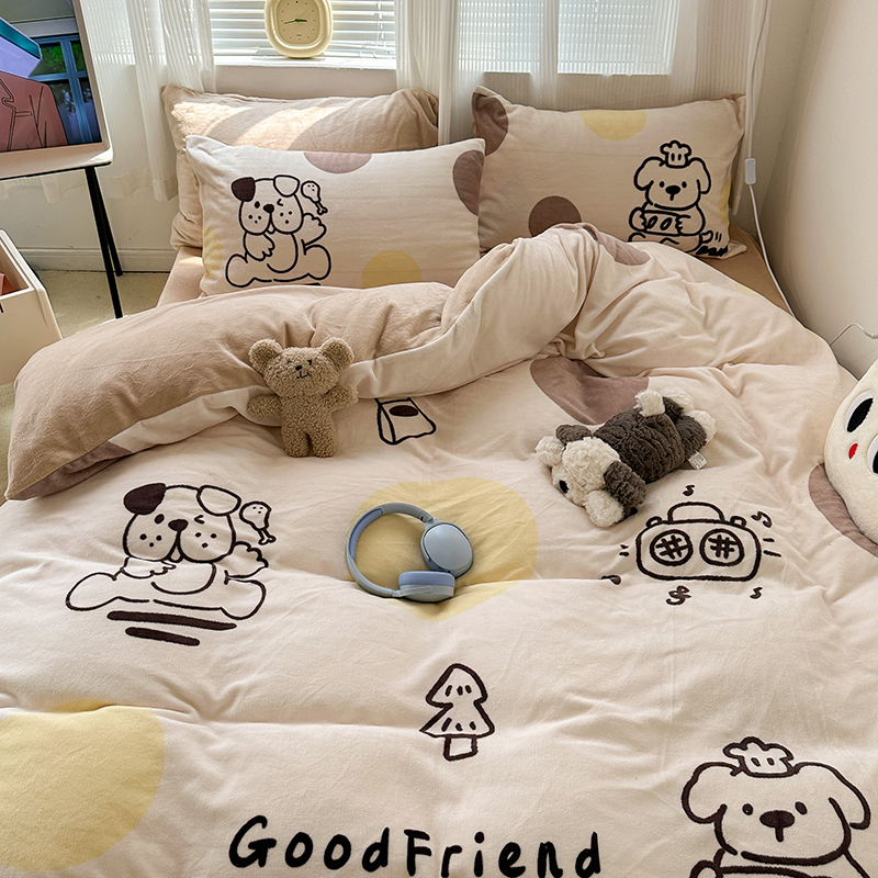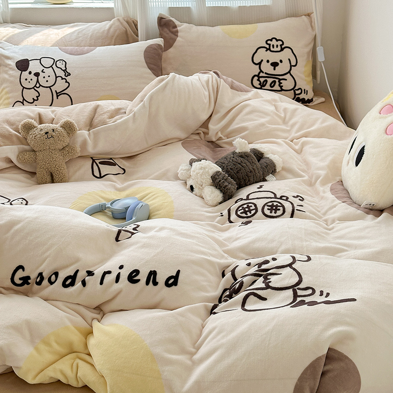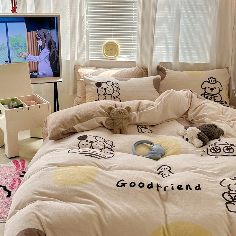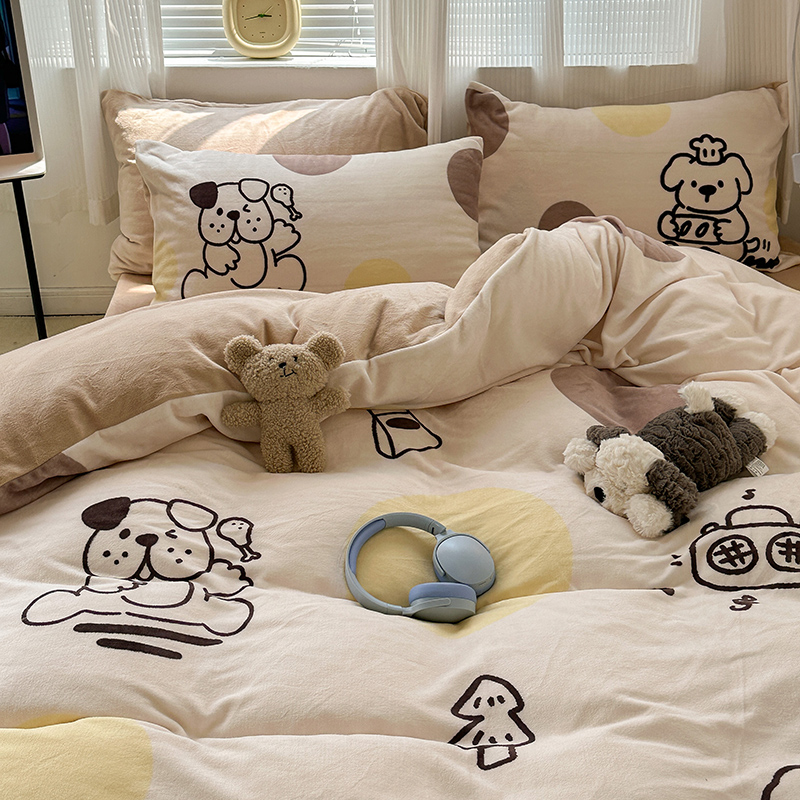 商品名称:昔可家纺 2023新款大版数码印花保暖牛奶绒四件套 狗狗厨师