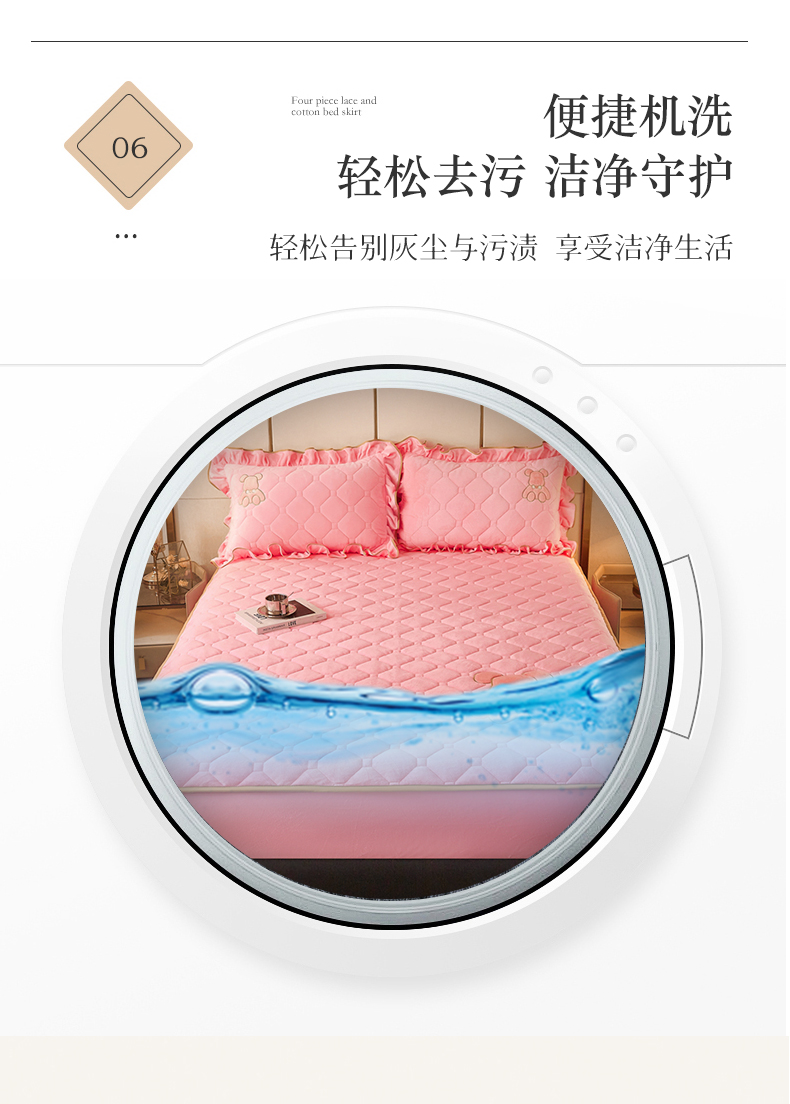 (总)屹成 2024新款水洗棉蕾丝四季款床笠床裙单品套件-床裙三件套,粉玉,豆沙,粉红,大红,橄榄绿,卡其,玫红,浅紫,水绿,天蓝,银灰