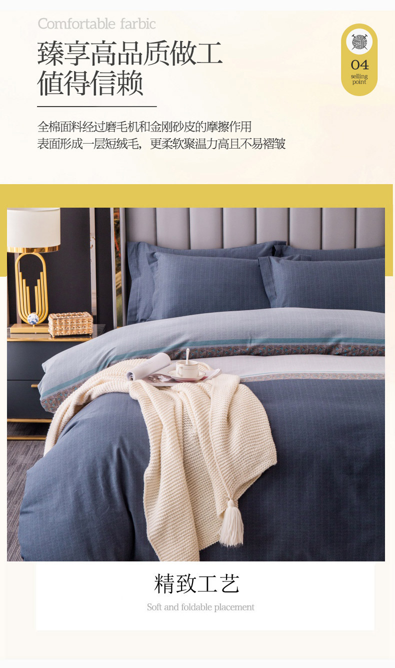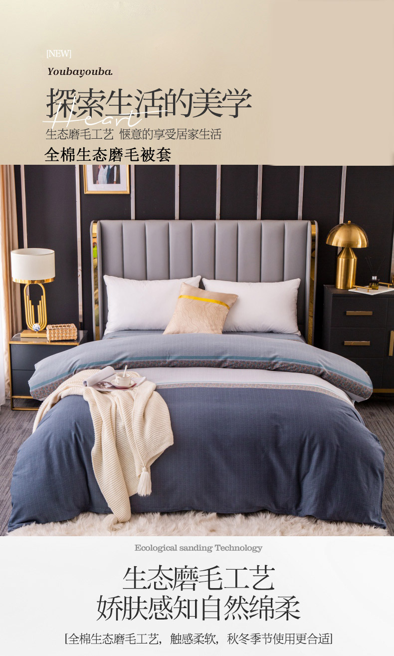 晶缦家纺 2023新款风尚系全棉生态磨毛多规格单被套 威尔士