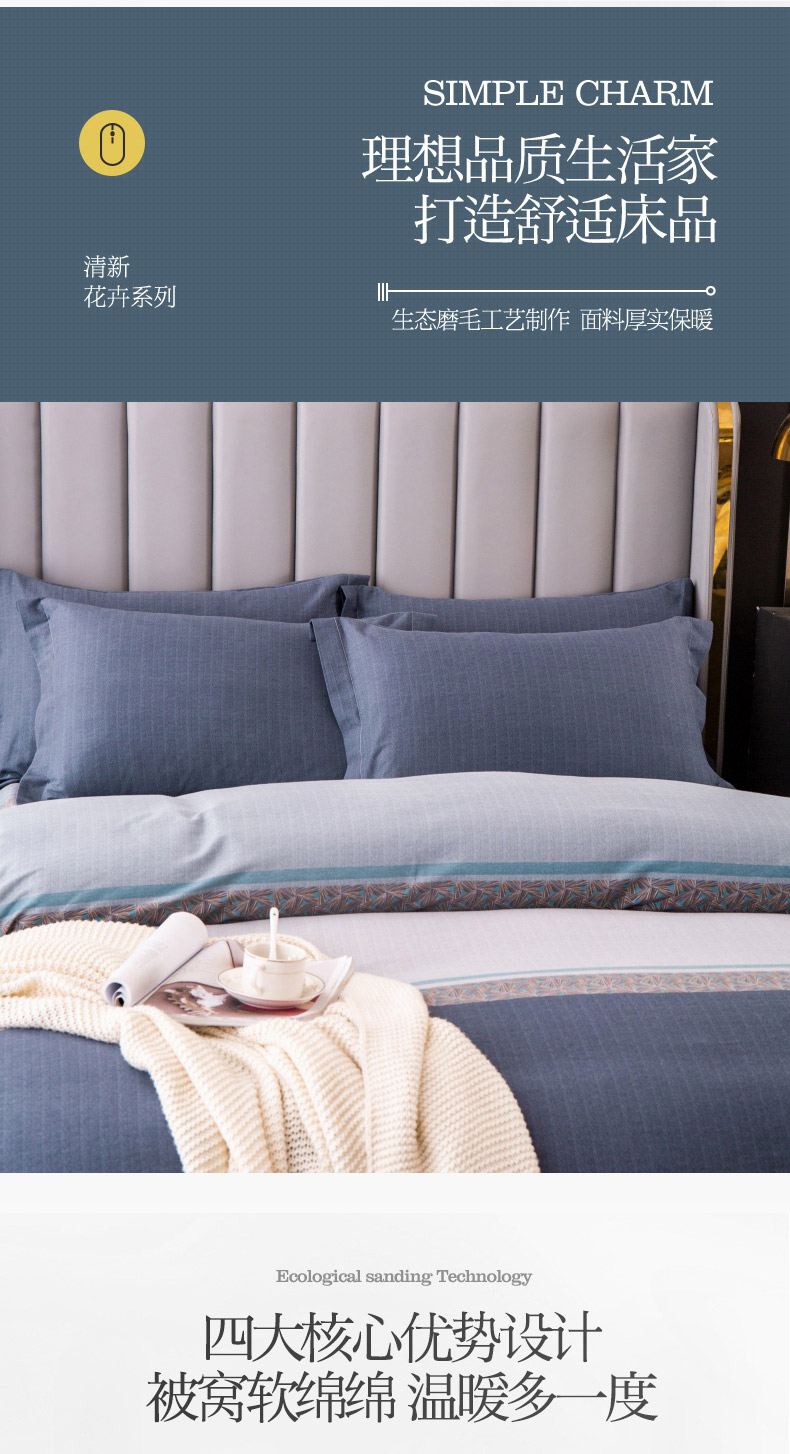 商品名称:晶缦家纺 2023新款风尚系全棉生态磨毛多规格单被套 威尔士