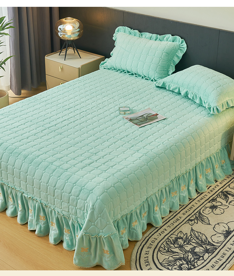 (总)恒爱 2022秋冬水晶绒翩翩花舞夹棉床裙四件套,大红色,豆沙红,橄榄绿,公主粉,桔色,咖啡色,孔雀绿,拉菲红,罗兰紫,玫红色,美人玉,米白色,米驼色,抹茶绿,浅灰色,紫色