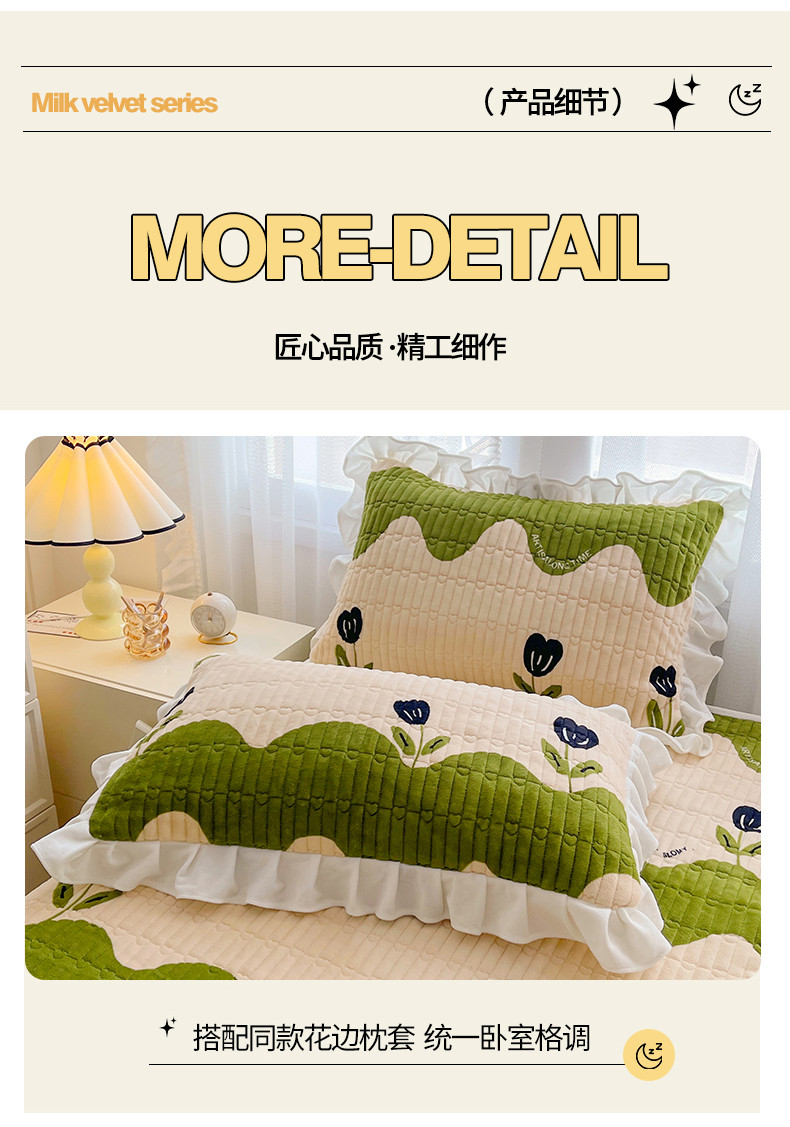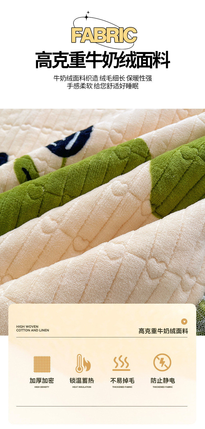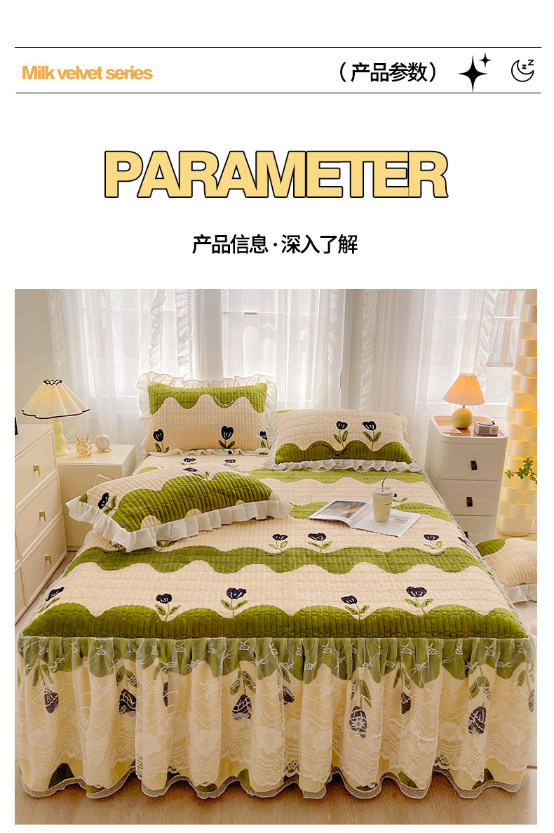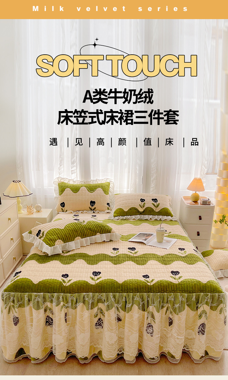 • 91家纺网 家纺一手货源 找家纺 宜凡家纺 2023新款牛奶绒印花夹棉被套床笠式床裙三件套 奶油花田
