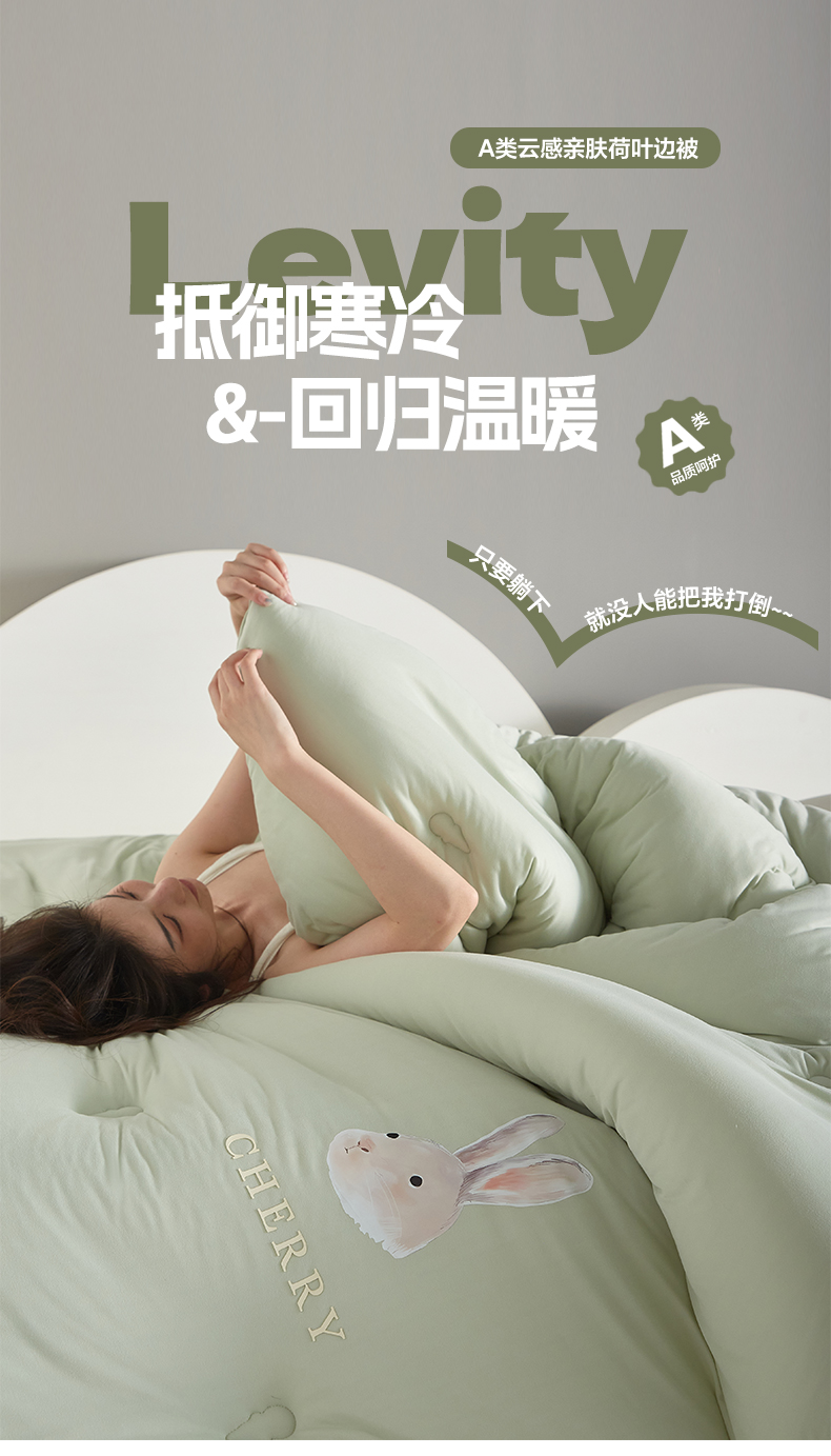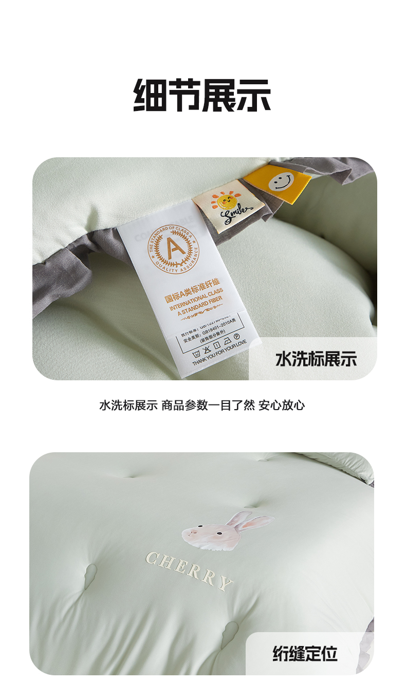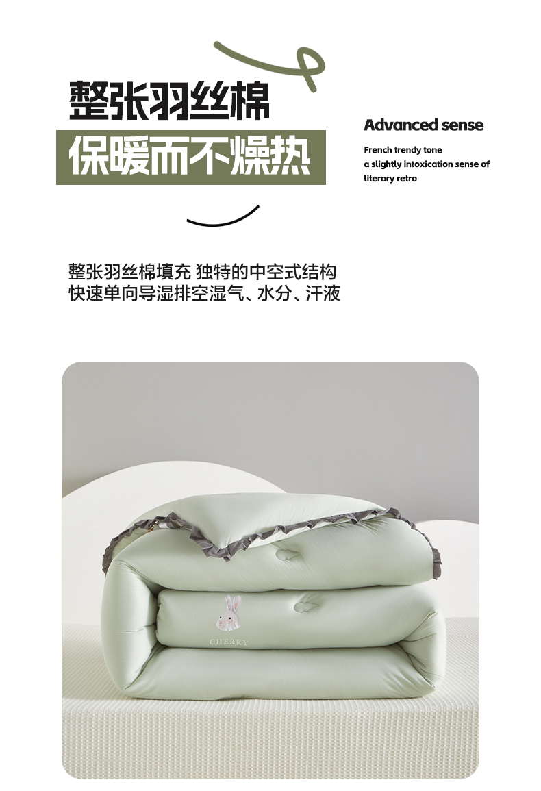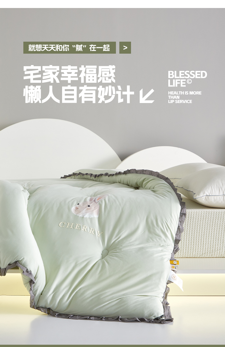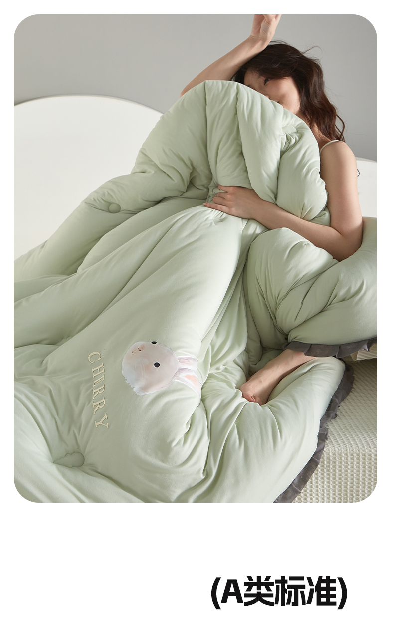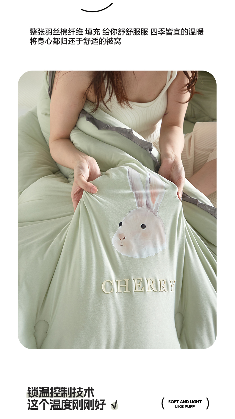 商品名称:莱福仕家纺 2023新款A类云感亲肤被 茶蕊兔(山茶绿)