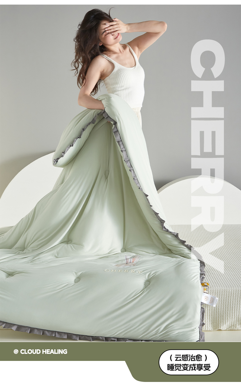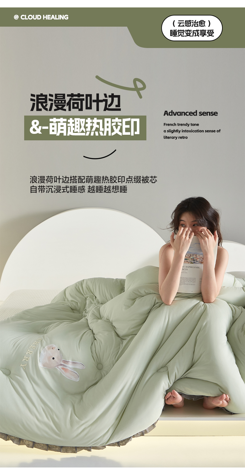 莱福仕家纺 2023新款A类云感亲肤被 茶蕊兔(山茶绿)