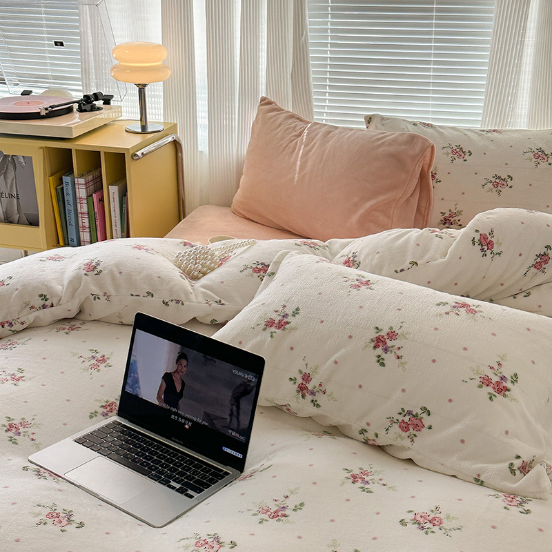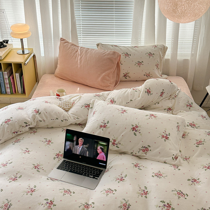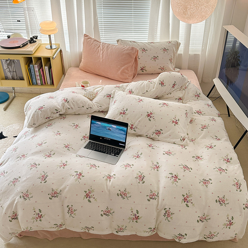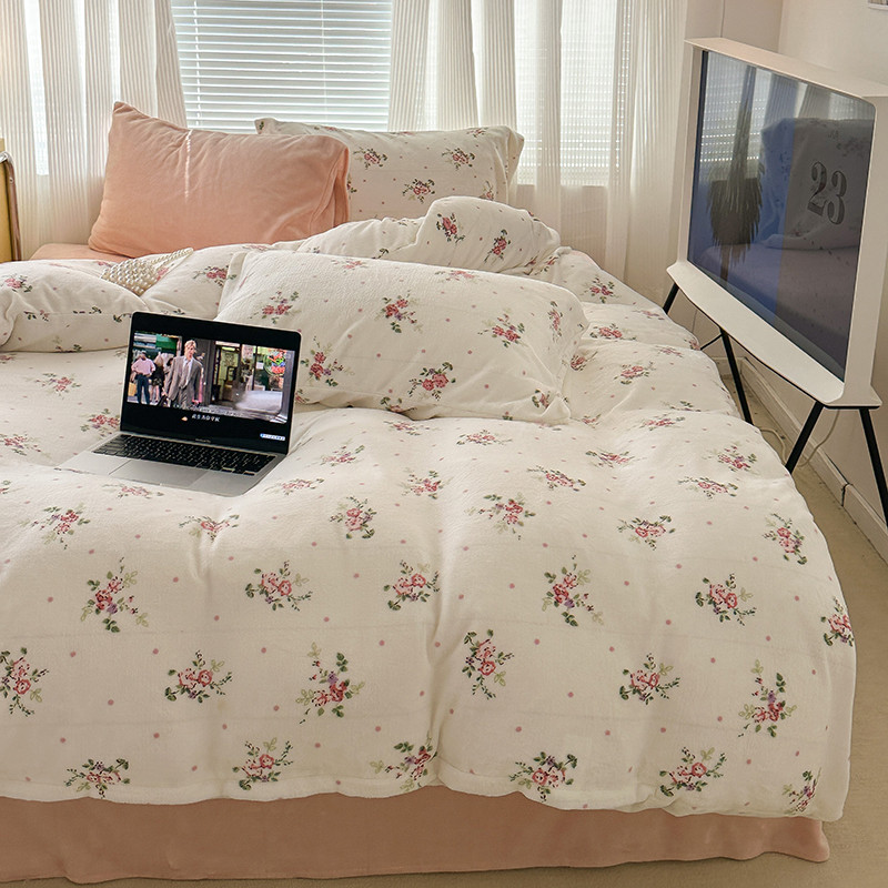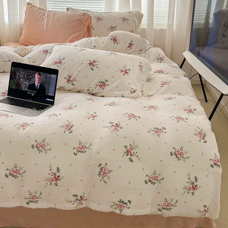 商品名称:昔可 2023新款柔软舒适混搭牛奶绒四件套 初恋玫瑰