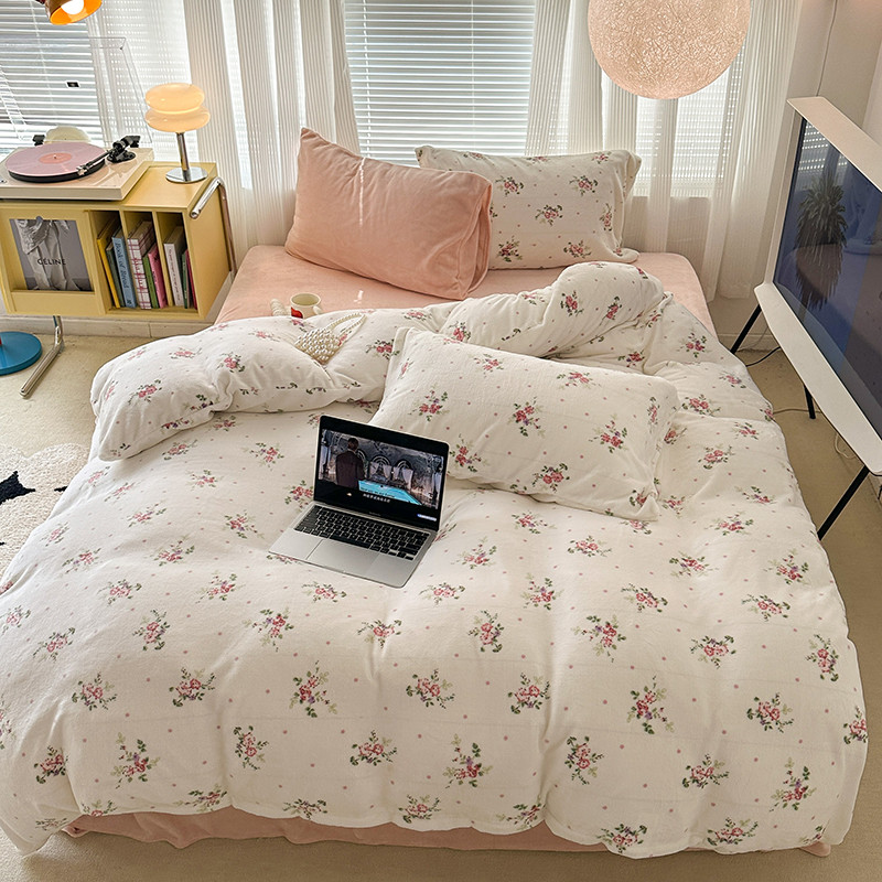 昔可 2023新款柔软舒适混搭牛奶绒四件套 初恋玫瑰